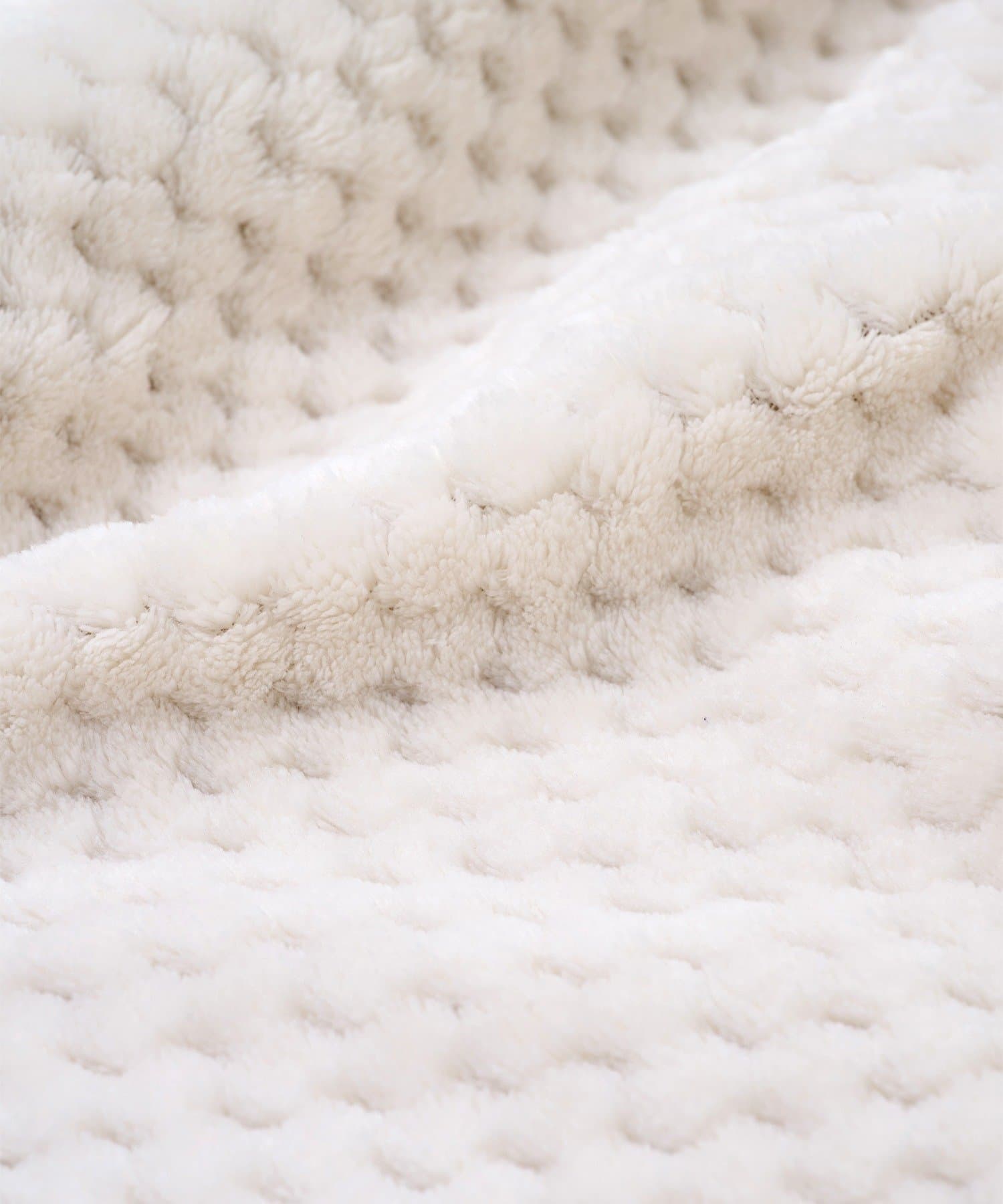 ● ブランケットは大判でやわらかく、なめらかな肌ざわり。生まれたての赤ちゃんにも安心してお使いいただけます♪