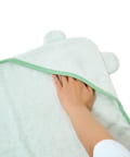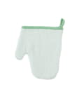 ●ミトンはお湯で湿らせ、必要に応じて赤ちゃん用の石鹸やボディソープをつけて軽くマッサージするようにご使用ください。