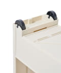 ●使用中に本品を持ち上げますと側板の差し込み部が抜け、本品が破損し思わぬけがをするおそれがあります。持ち上げる際は収納物を取り出してからおこなってください。
