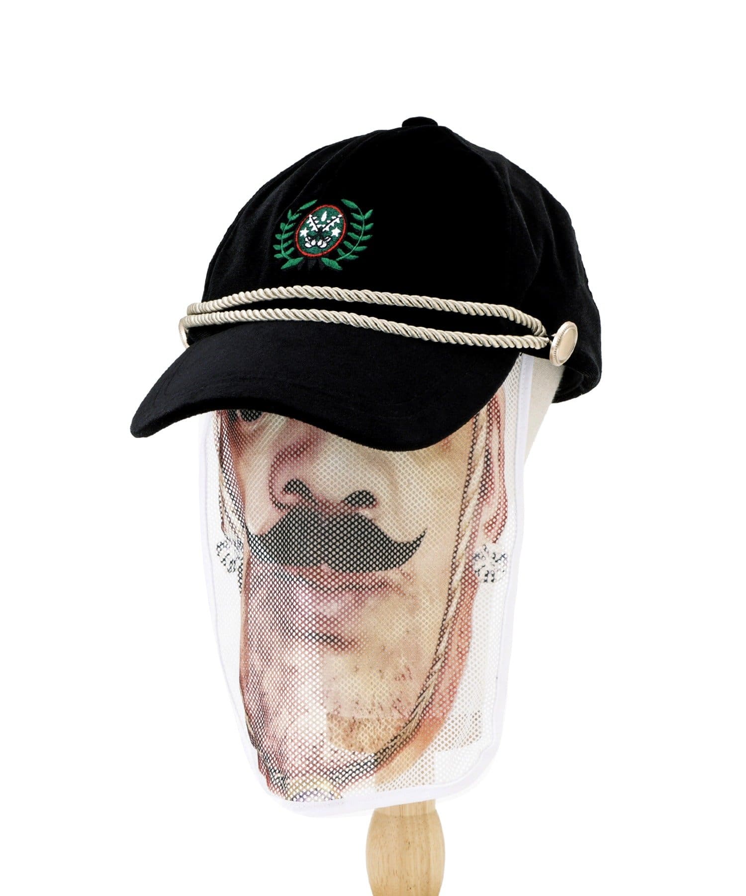 ●光沢のあるベロア素材に、シターゴ王国の紋章がステッチされた高級感あふれる帽子。
