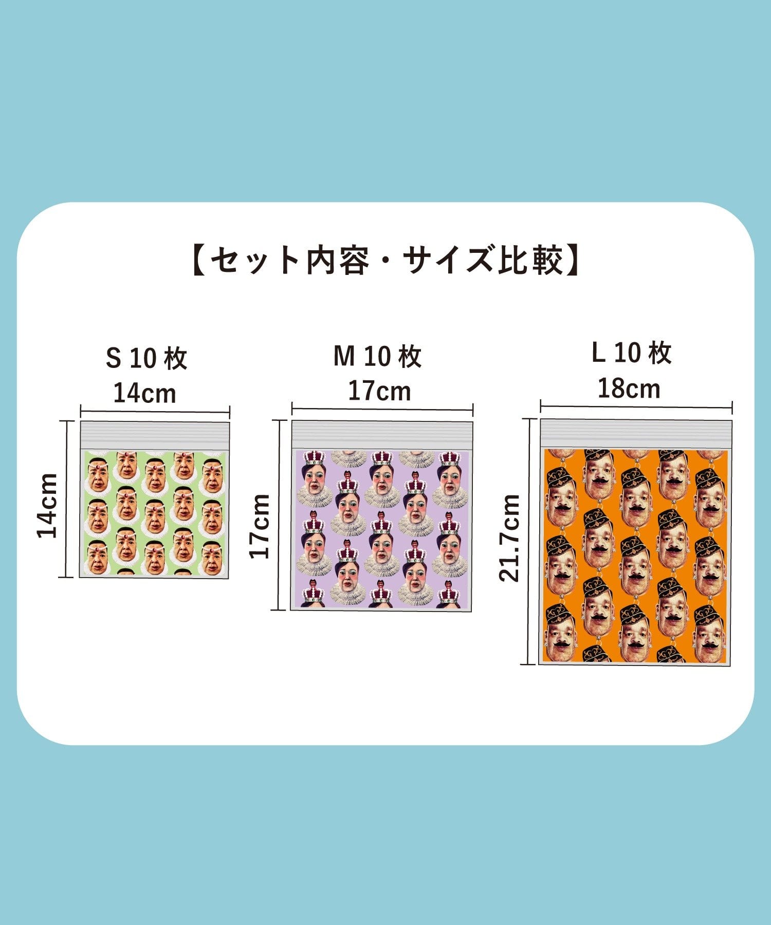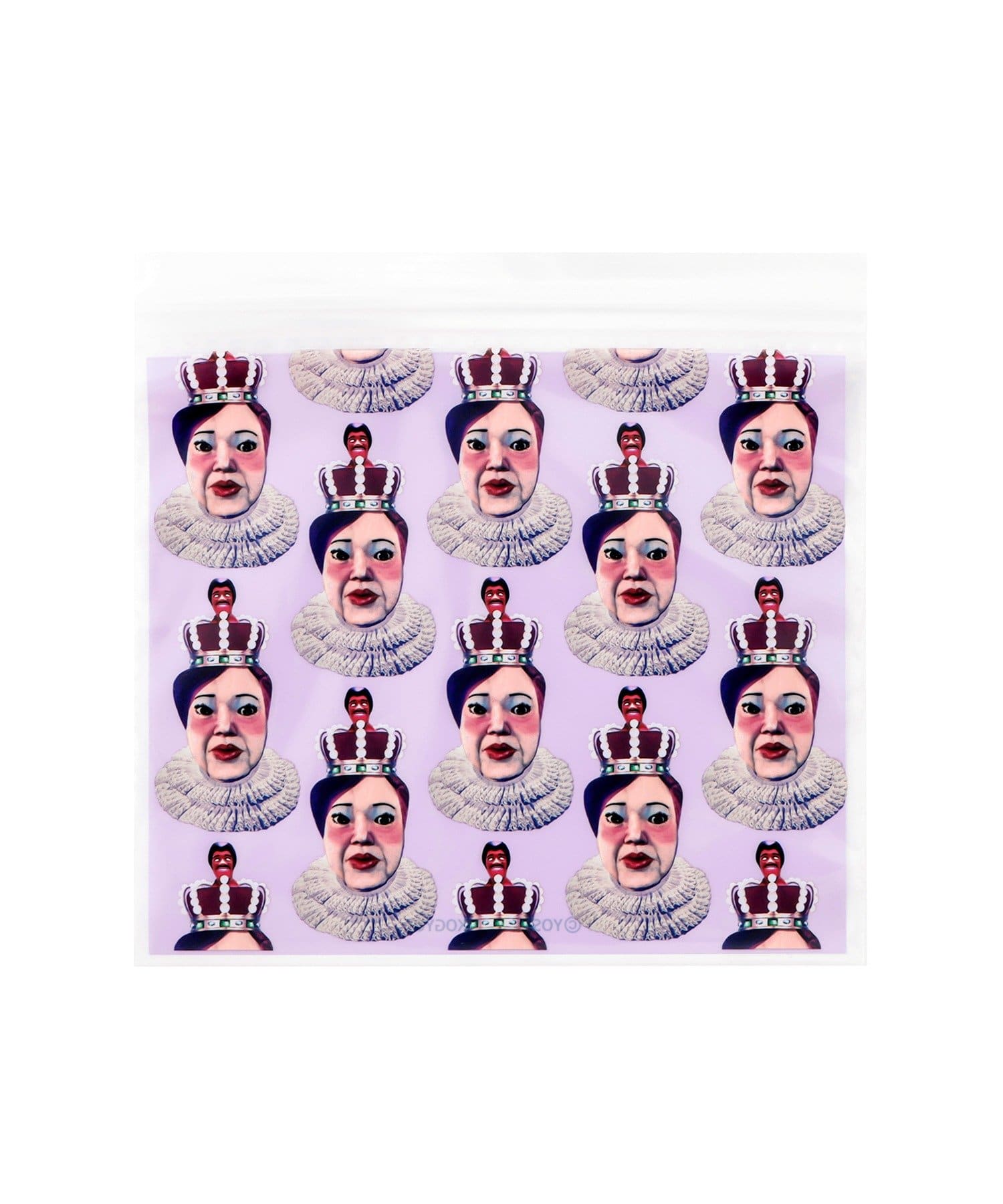 ●ズガーイ国王、ビティ王妃、アーバラ王子のお顔がデザインされたジップバッグ。