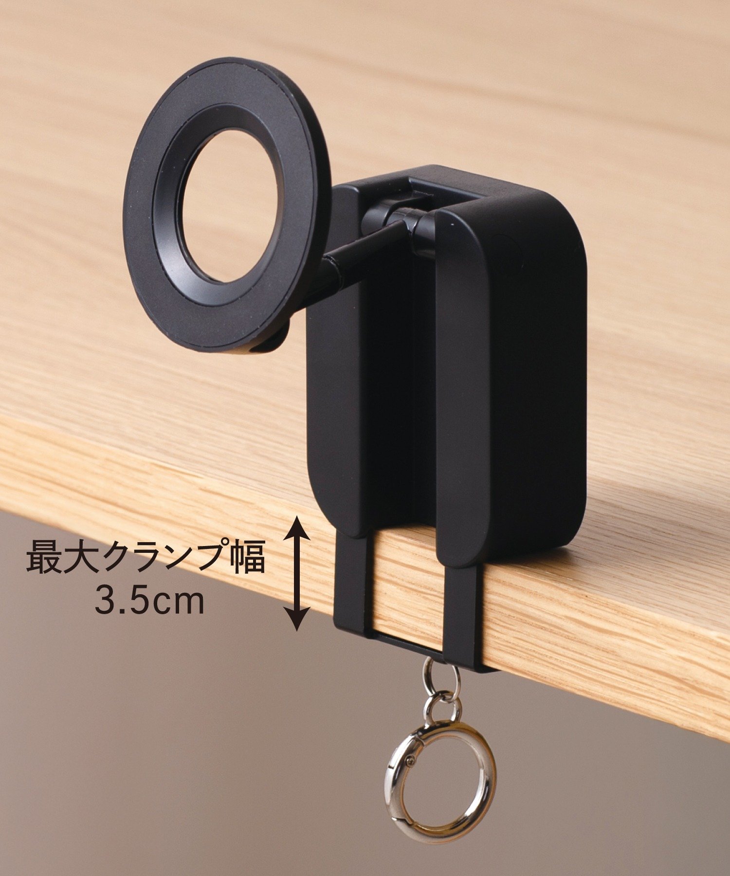 ●机に挟んで固定したり、マグネットの付く壁に設置できるスマホホルダーです。