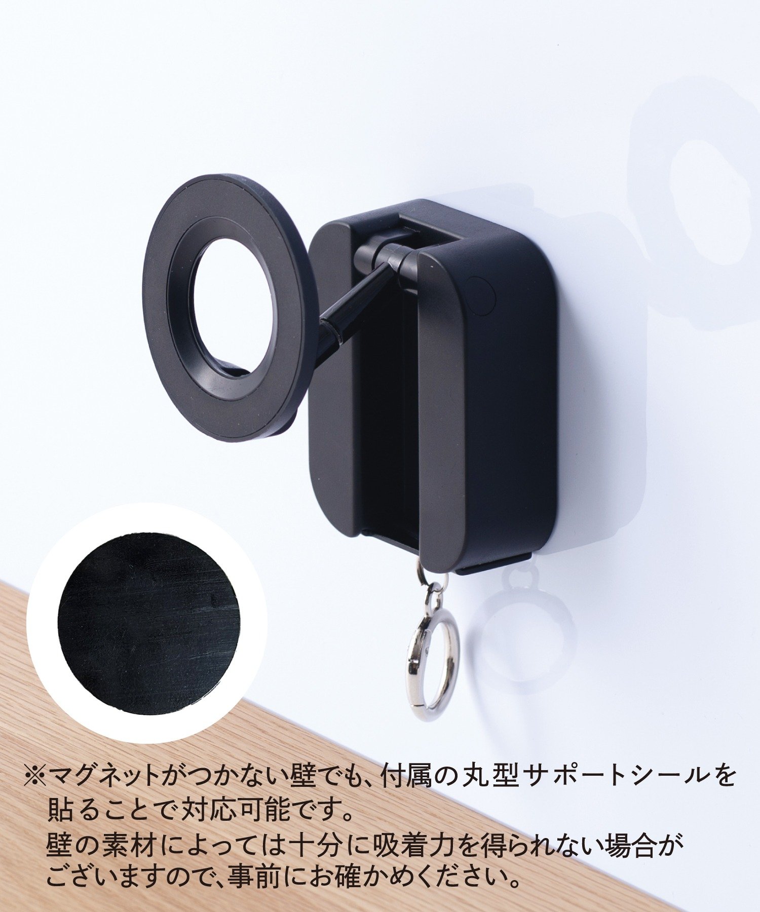 ●マグネットがつかない壁でも、付属の丸型サポートシールを貼ることで設置可能。