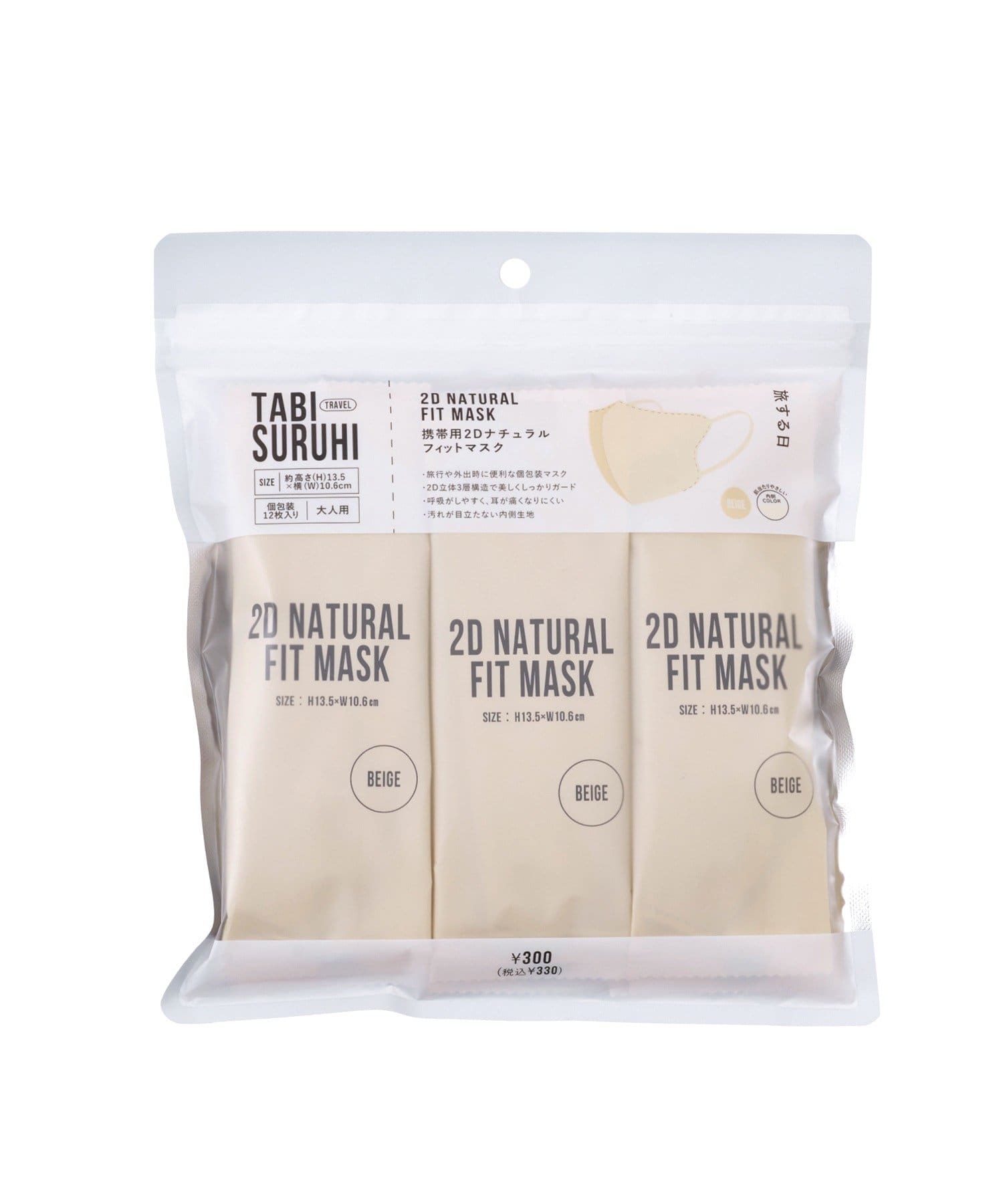 • 3COINS(スリーコインズ) 携帯用2Dナチュラルフィットマスク12枚入り