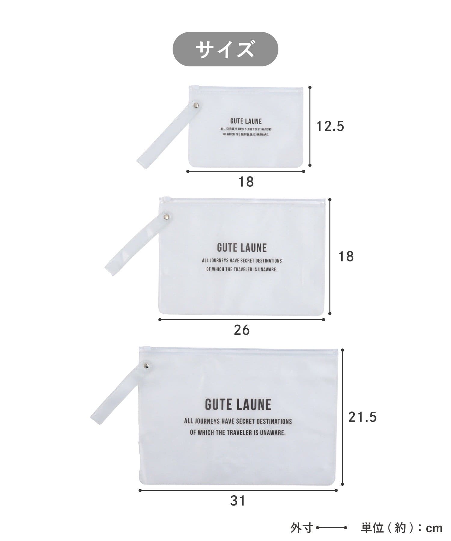 ●3サイズセットなので、旅行や出張時の荷物の仕分け収納に便利です。
