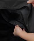 2.通常サイズに戻す際は、生地を挟まないように内側に入れ込みながら下部ファスナーを閉じてください。