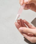 ・筆で直接、爪と爪裏、甘皮部分に塗り、なじませます。