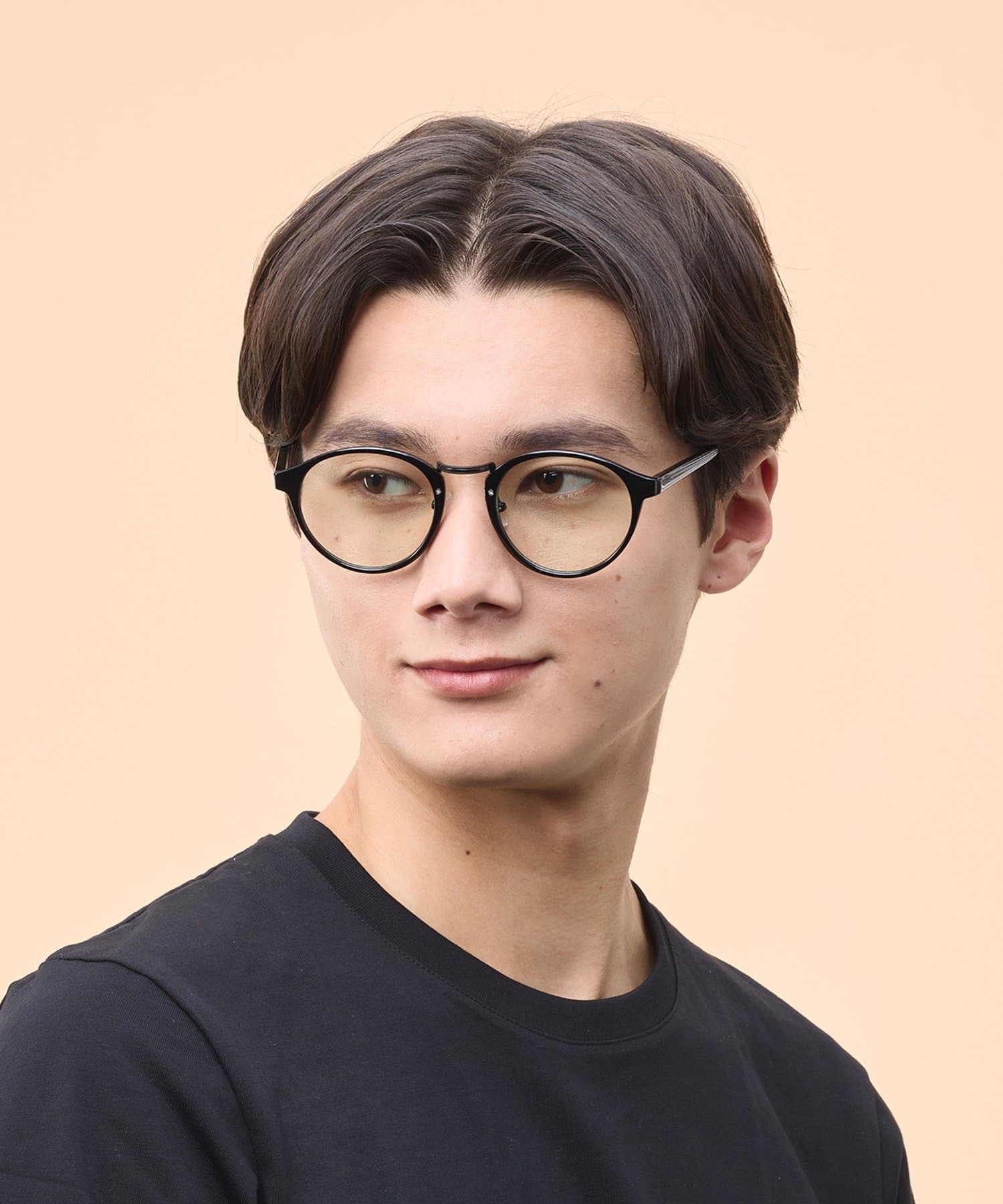 ●紫外線に反応してレンズの色が変わる調光タイプ!室内ではクリアで、普通のメガネ感覚で使えます。