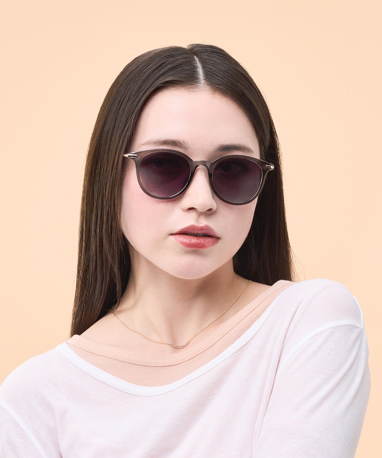 ●程よい透け感と引き締まったレンズカラーで、上品で洗練された印象に。
