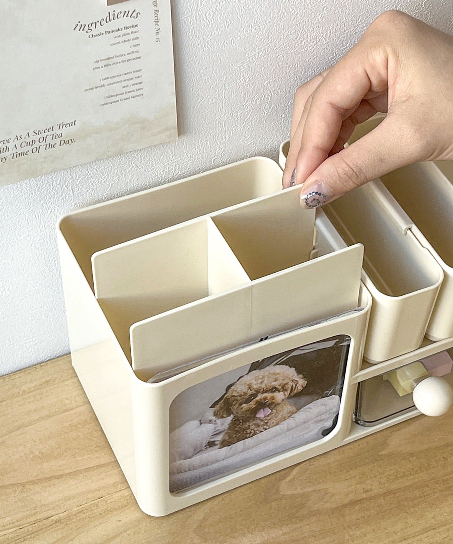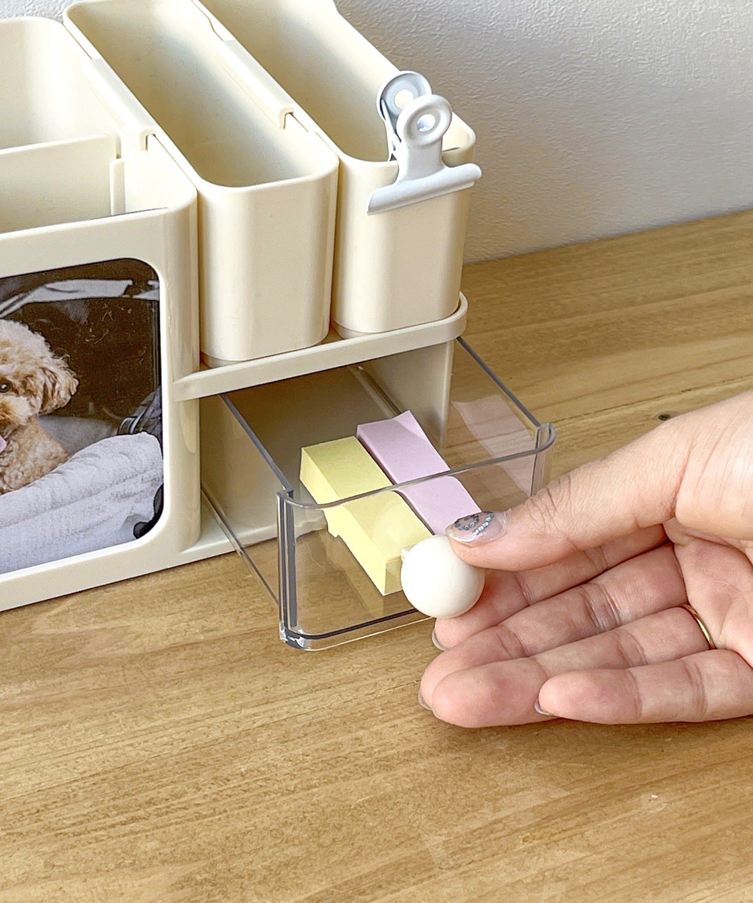 ●デスク小物をまとめて収納できます。