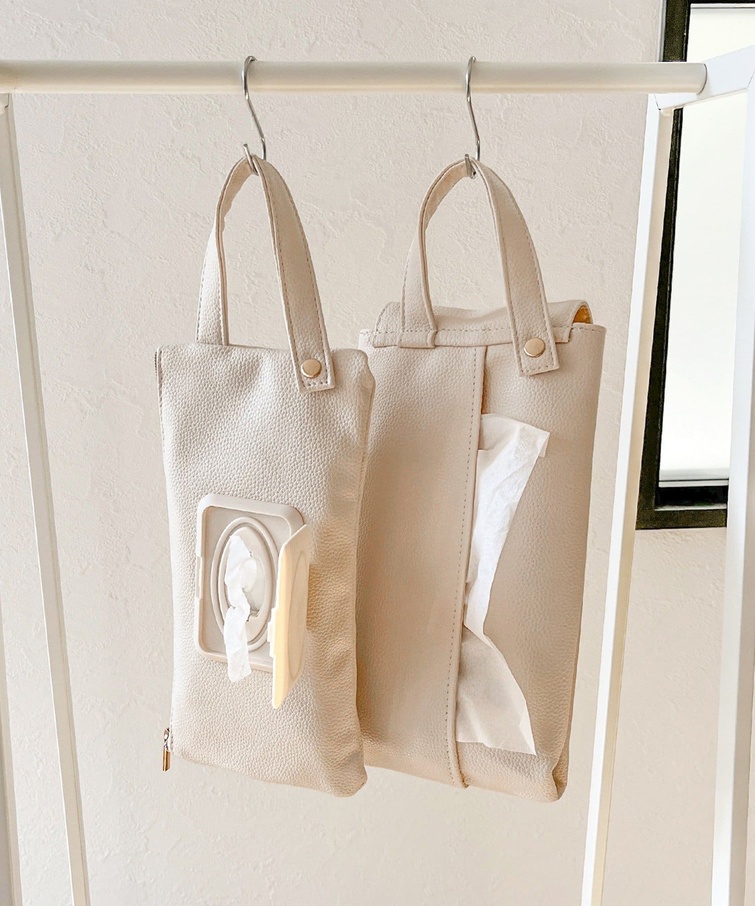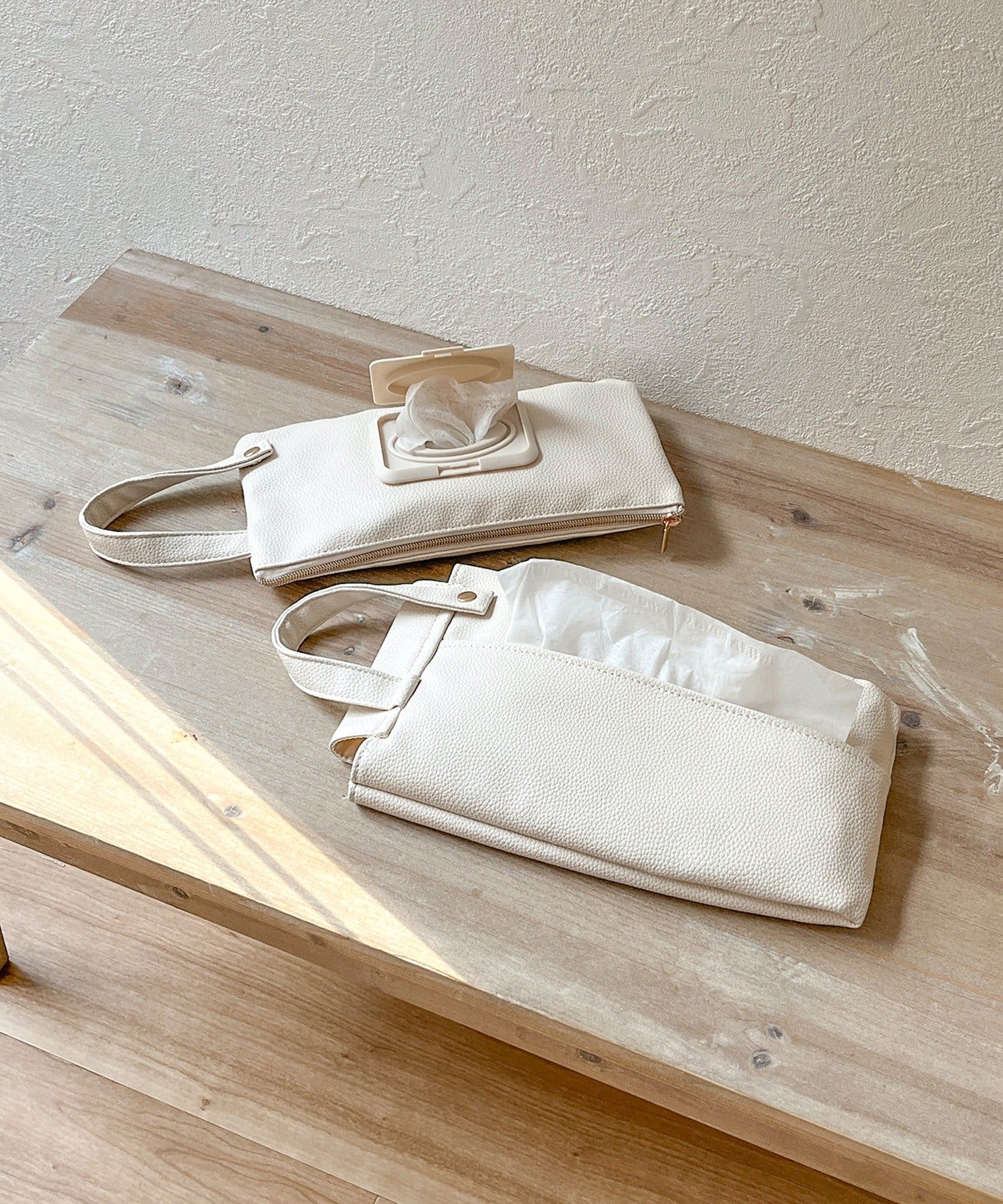 ●ボックスティッシュとウエットティッシュをまとめて収納できます。