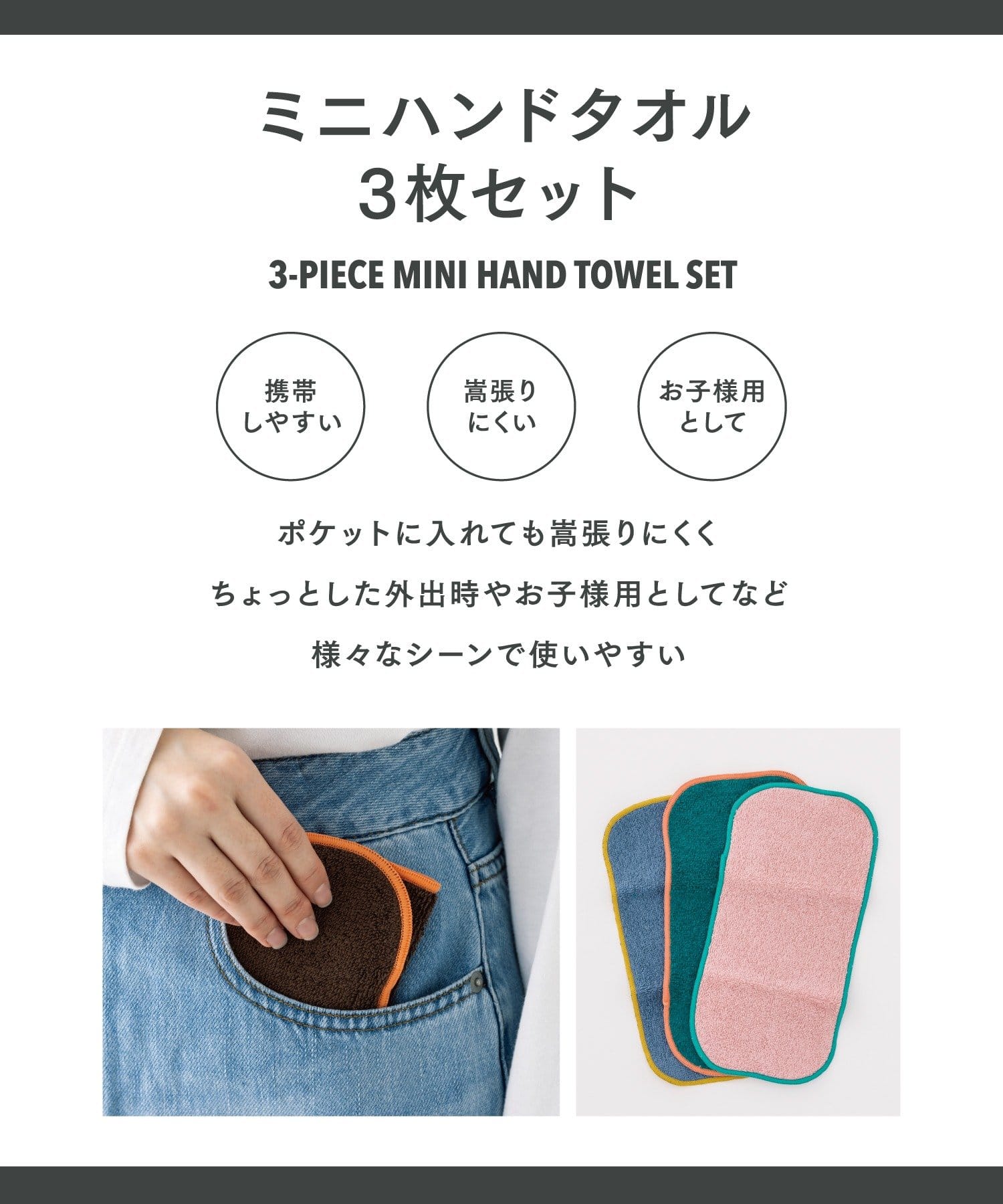 ミニハンドタオル3枚セット:11×22cm