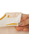 ●肩部分にもスナップボタンが付いており、頭を通しやすく、お着替えしやすい仕様です。