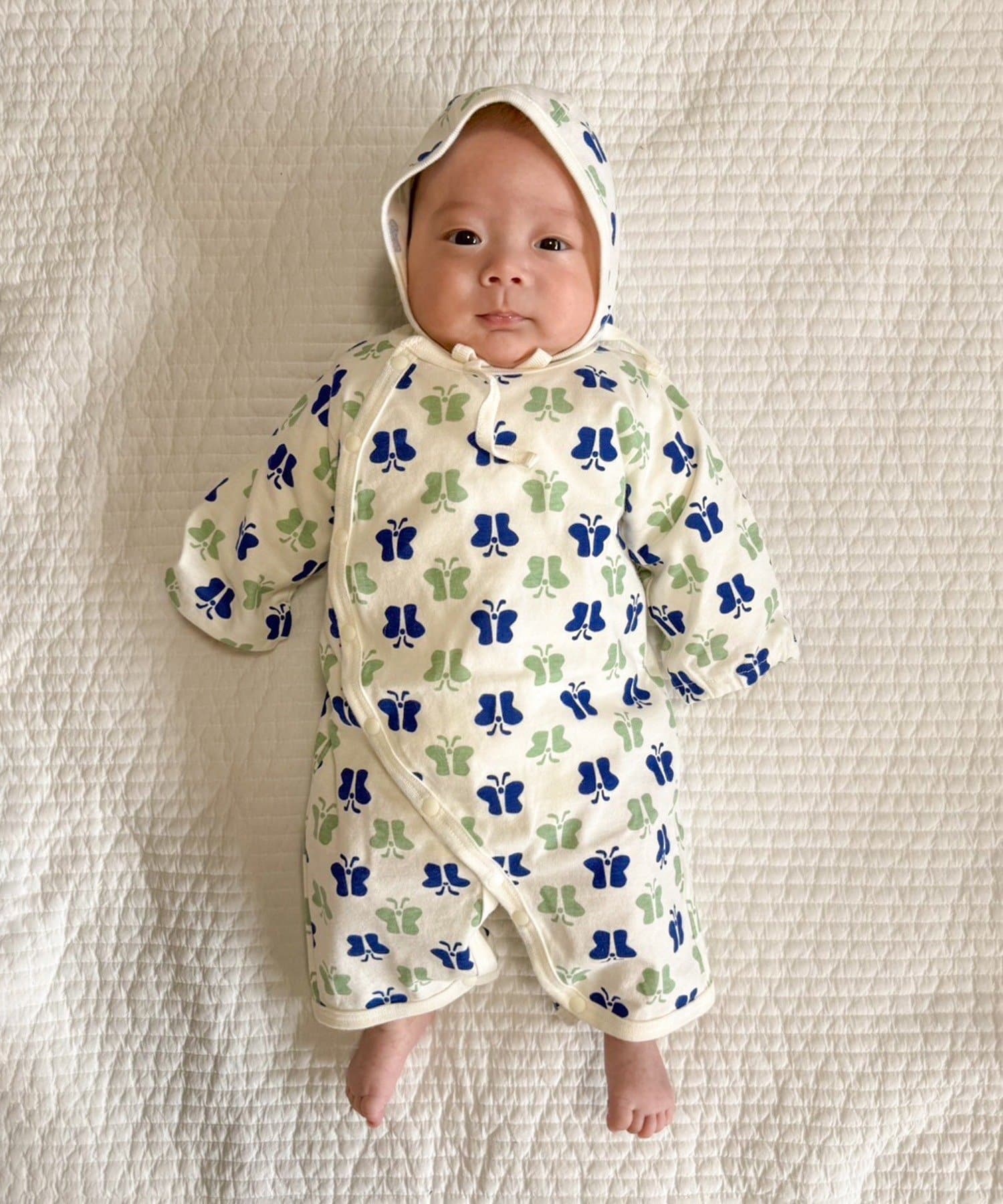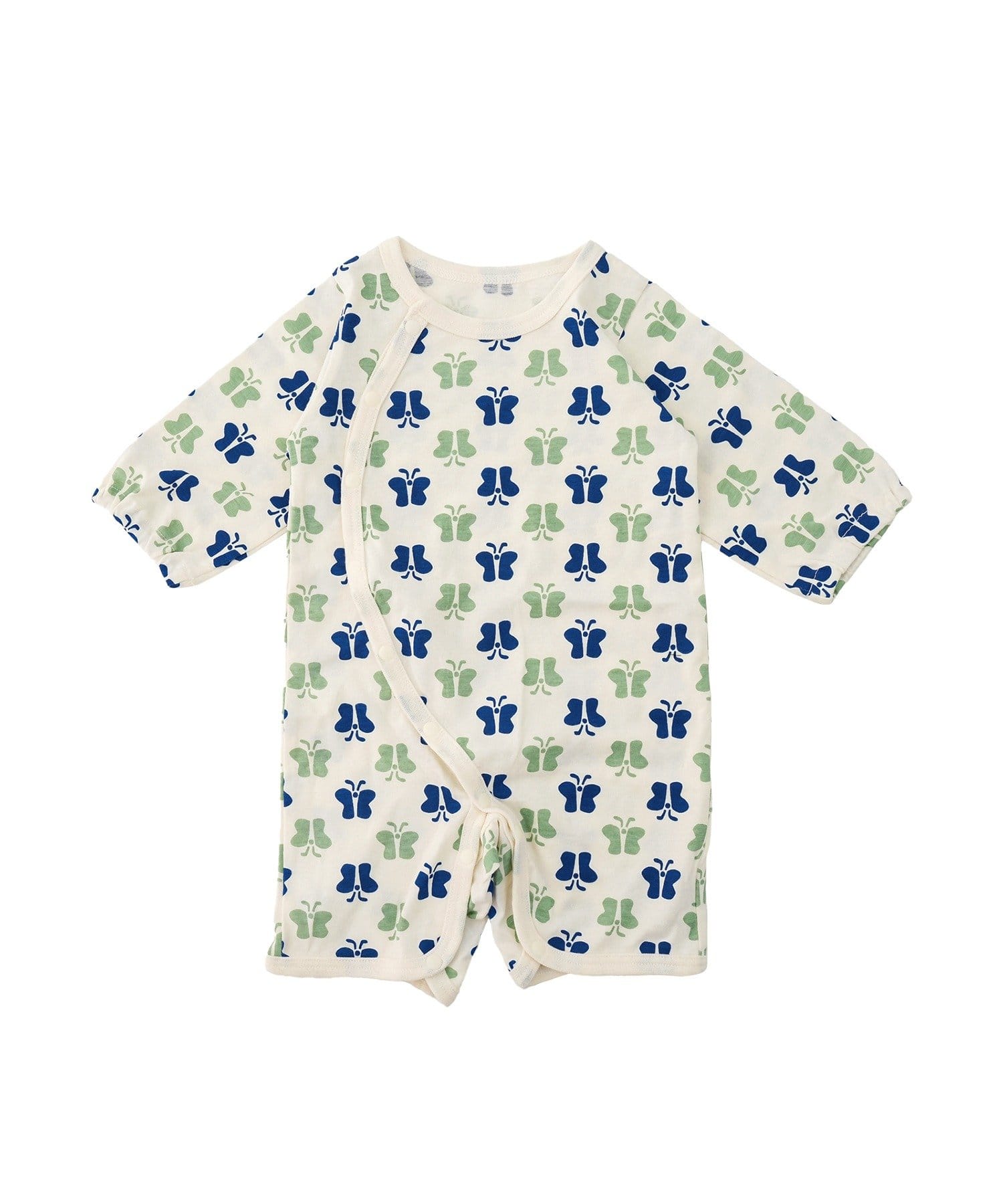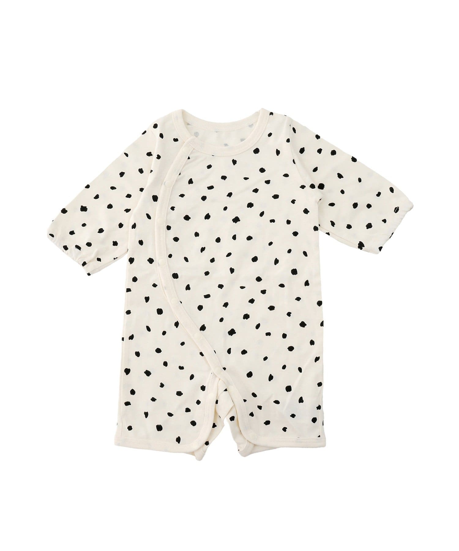 ●足元までスナップボタンで全開にできる構造のため、寝かせたままでもお着替えやおむつ替えがしやすいです。