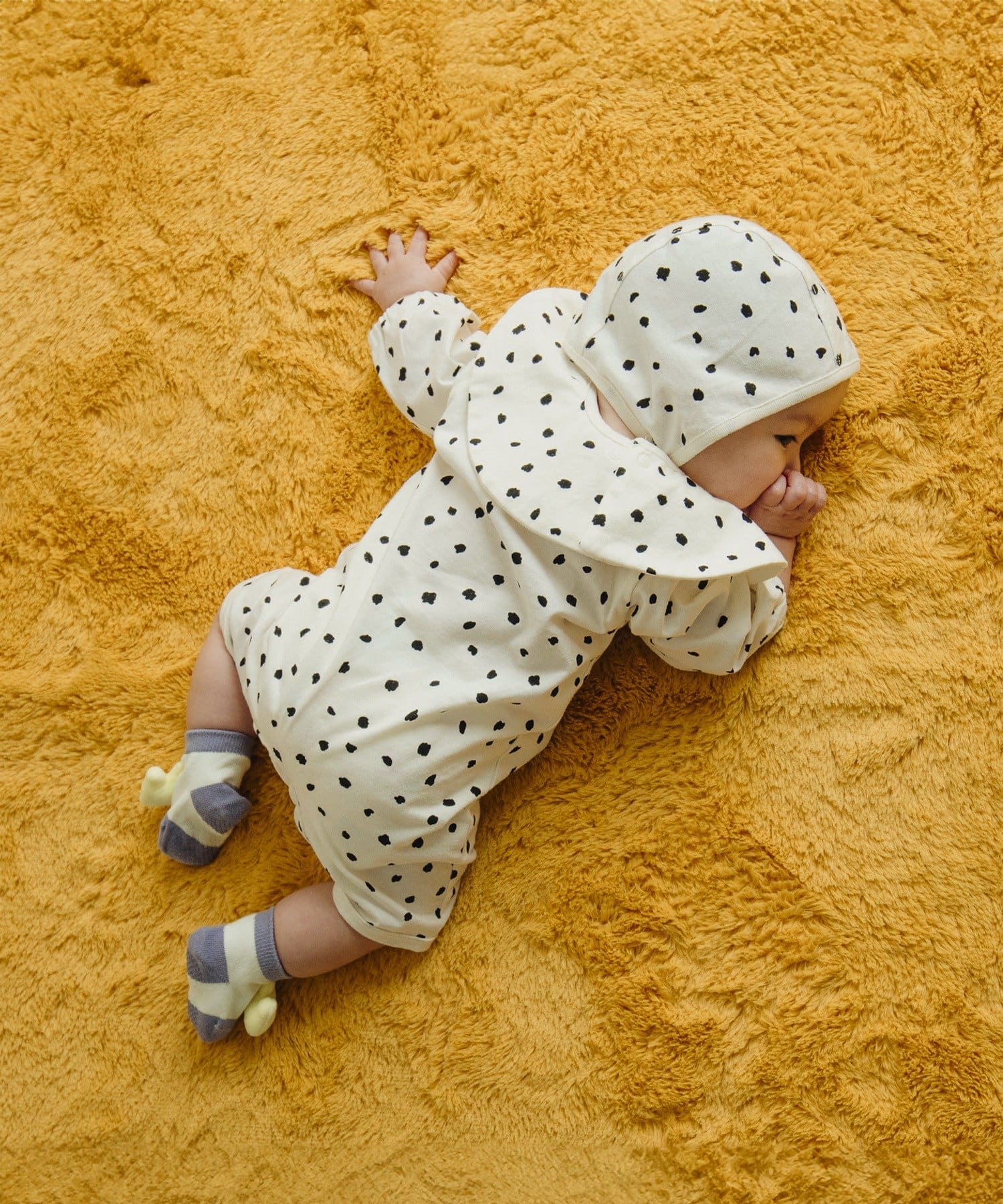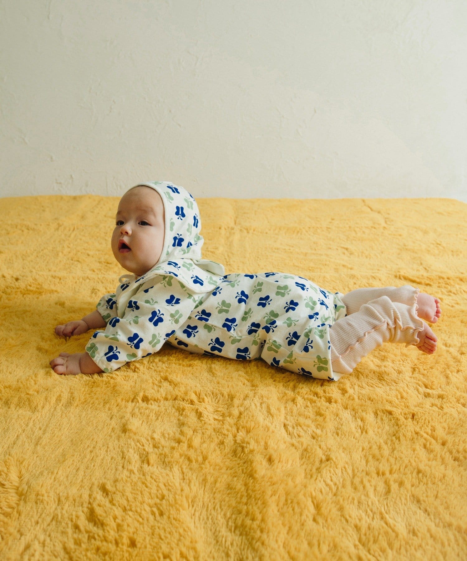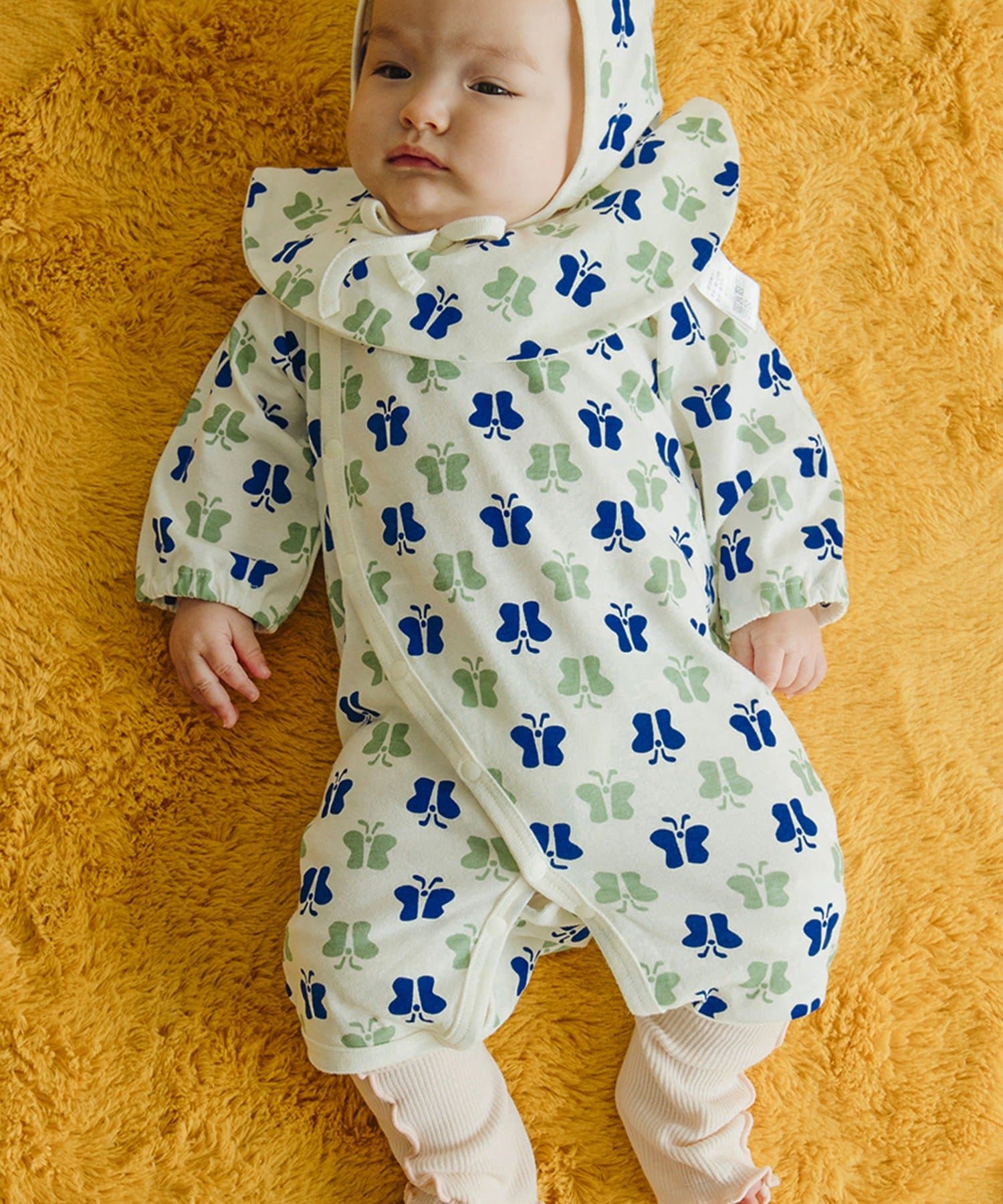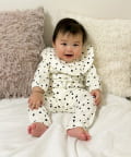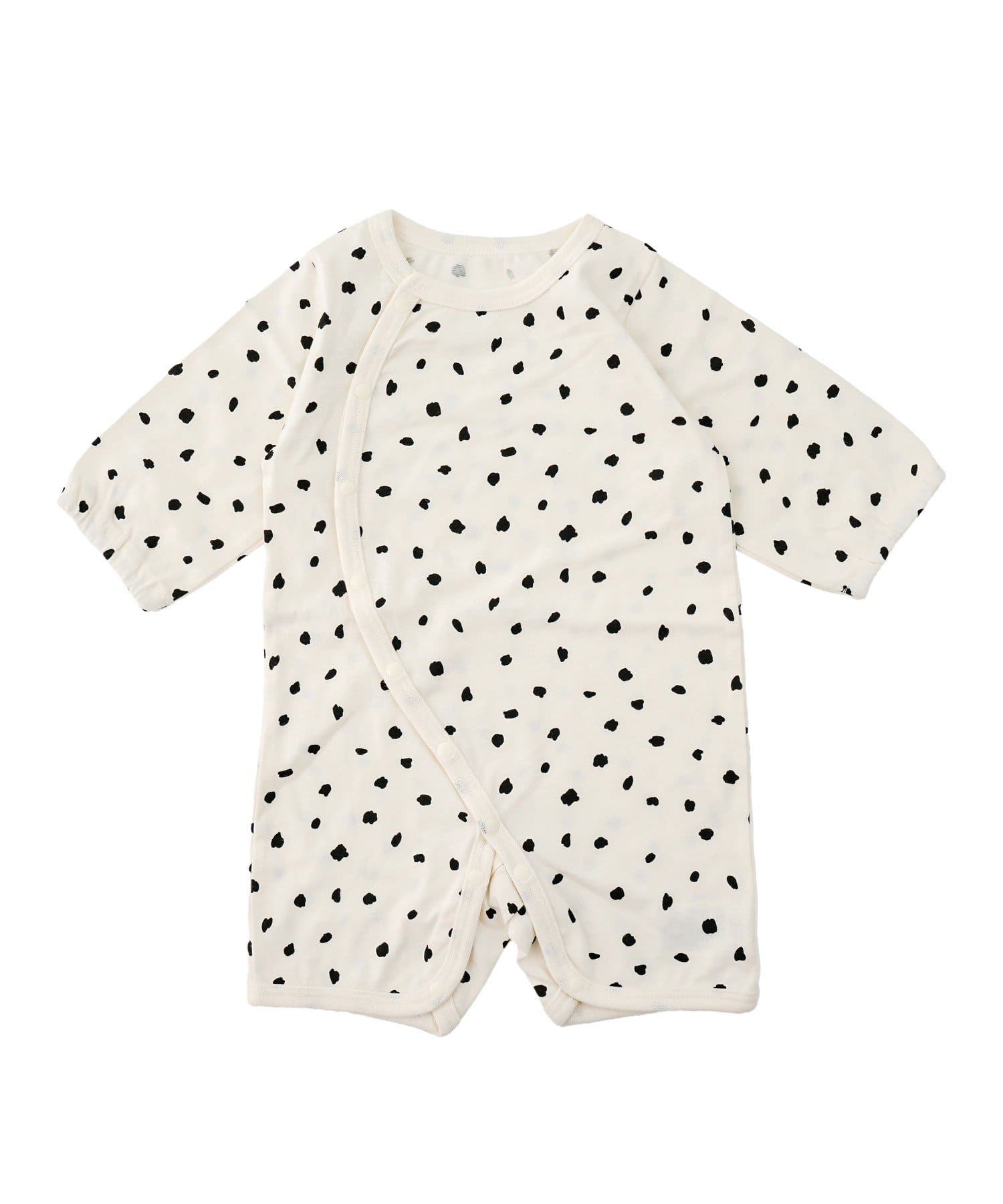 ●足元までスナップボタンで全開にできる構造のため、寝かせたままでもお着替えやおむつ替えがしやすいです。