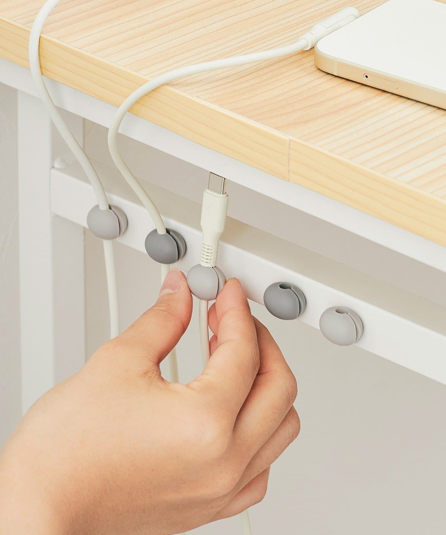 本品のスリットにコードを通して使用してください。