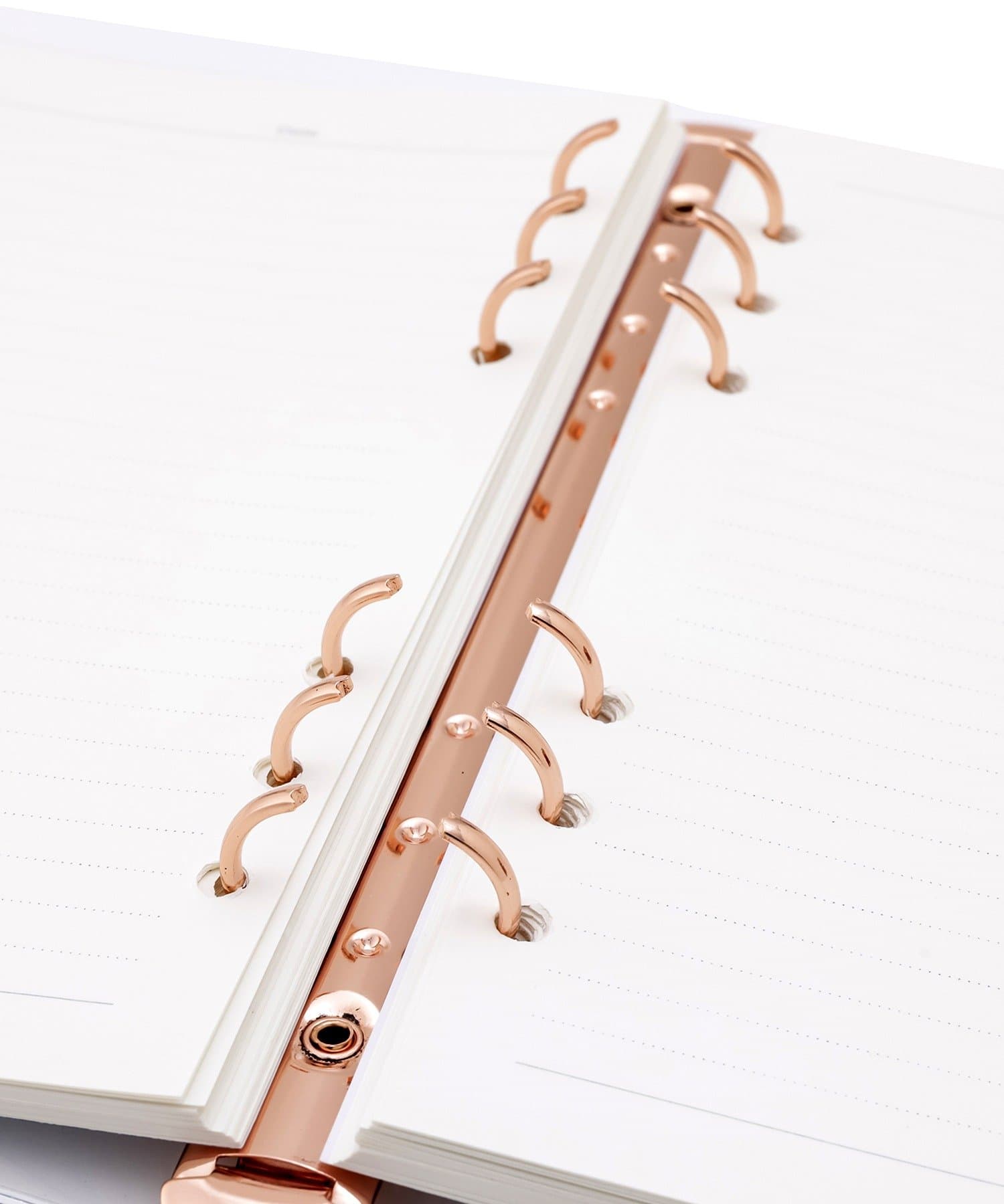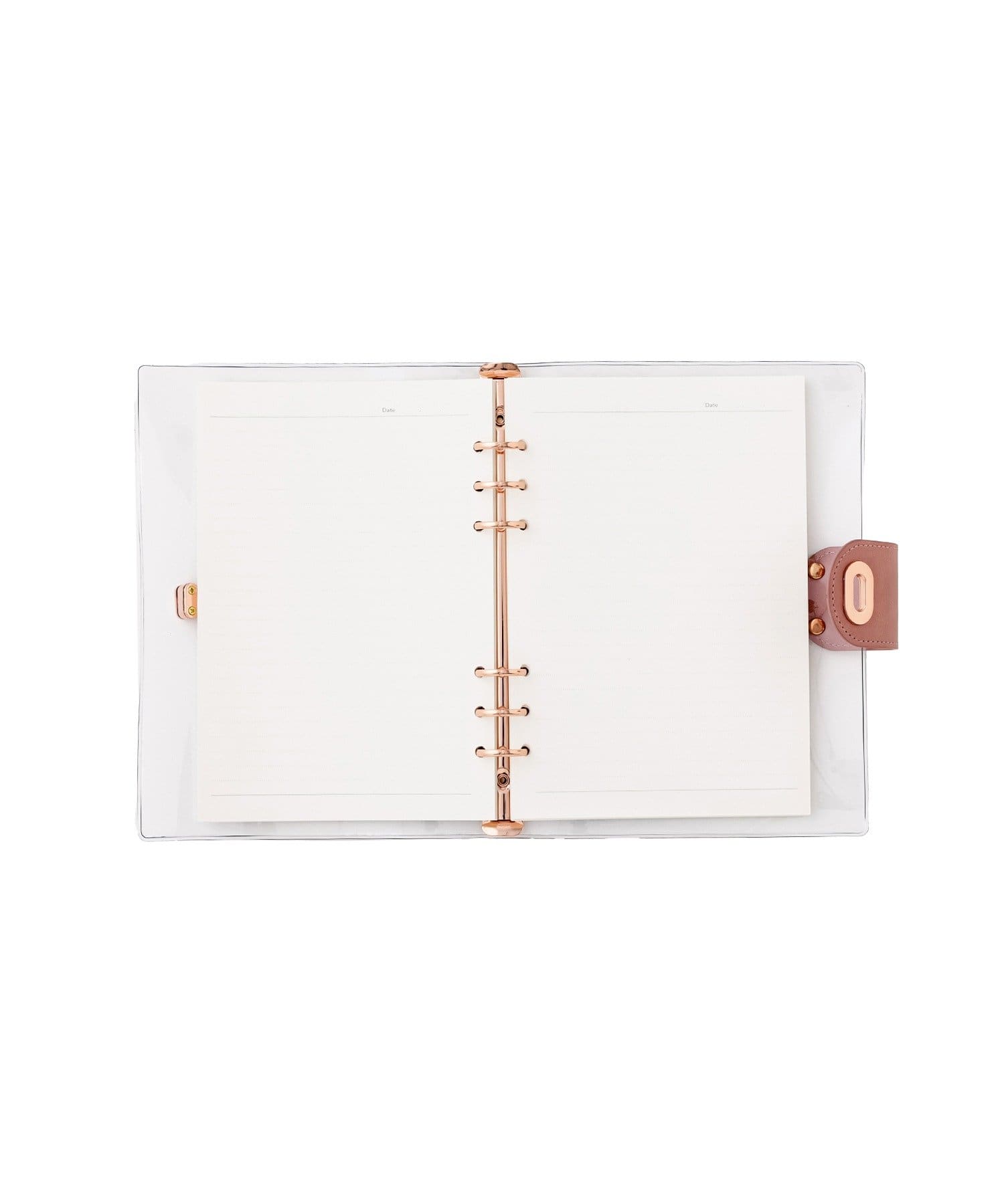 ●両端の金具を押すだけでリングが開き、紙の付け替えも簡単。