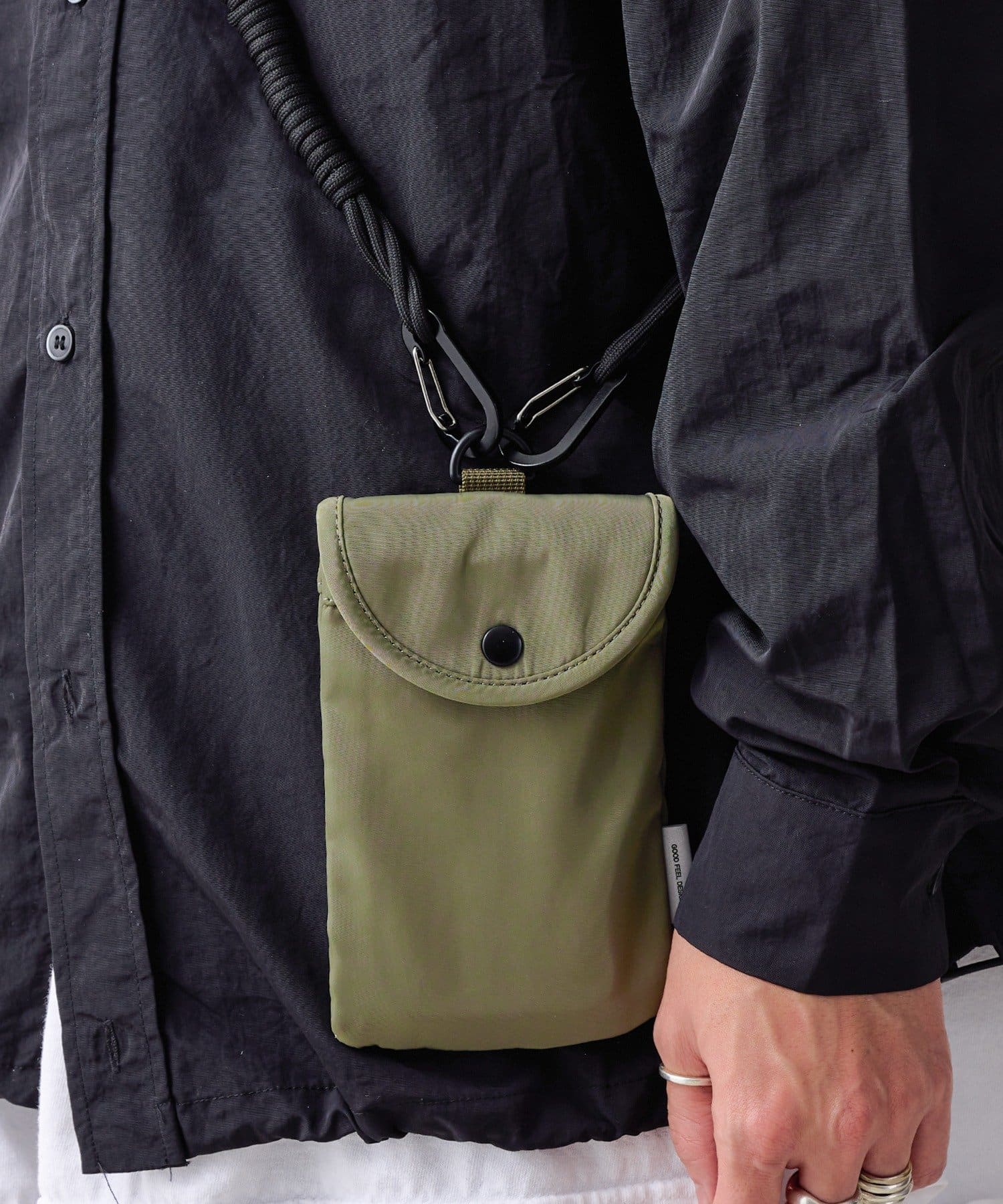 ●同シリーズのウォレットやマルチポーチに取り付けて、首から吊り下げて使えるストラップショルダーです。