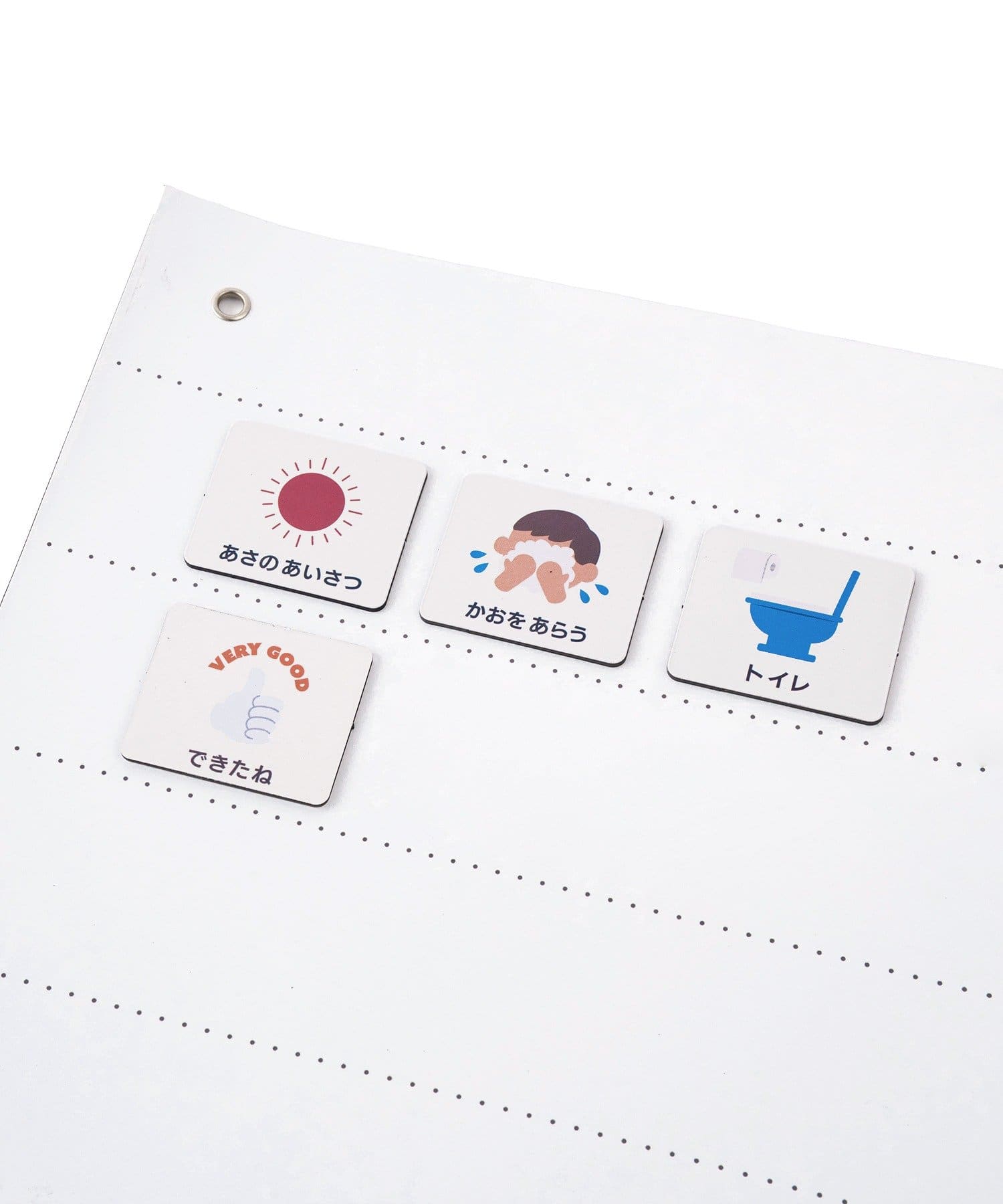●両面仕様のマグネットが28枚入っており、項目ができたらくるっと裏返して「できたね」の文字と可愛いイラストで達成感を味わえます。