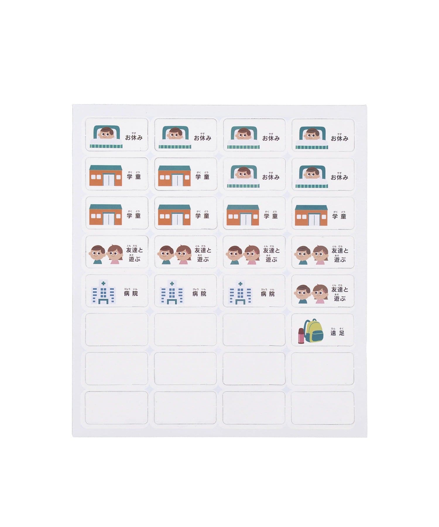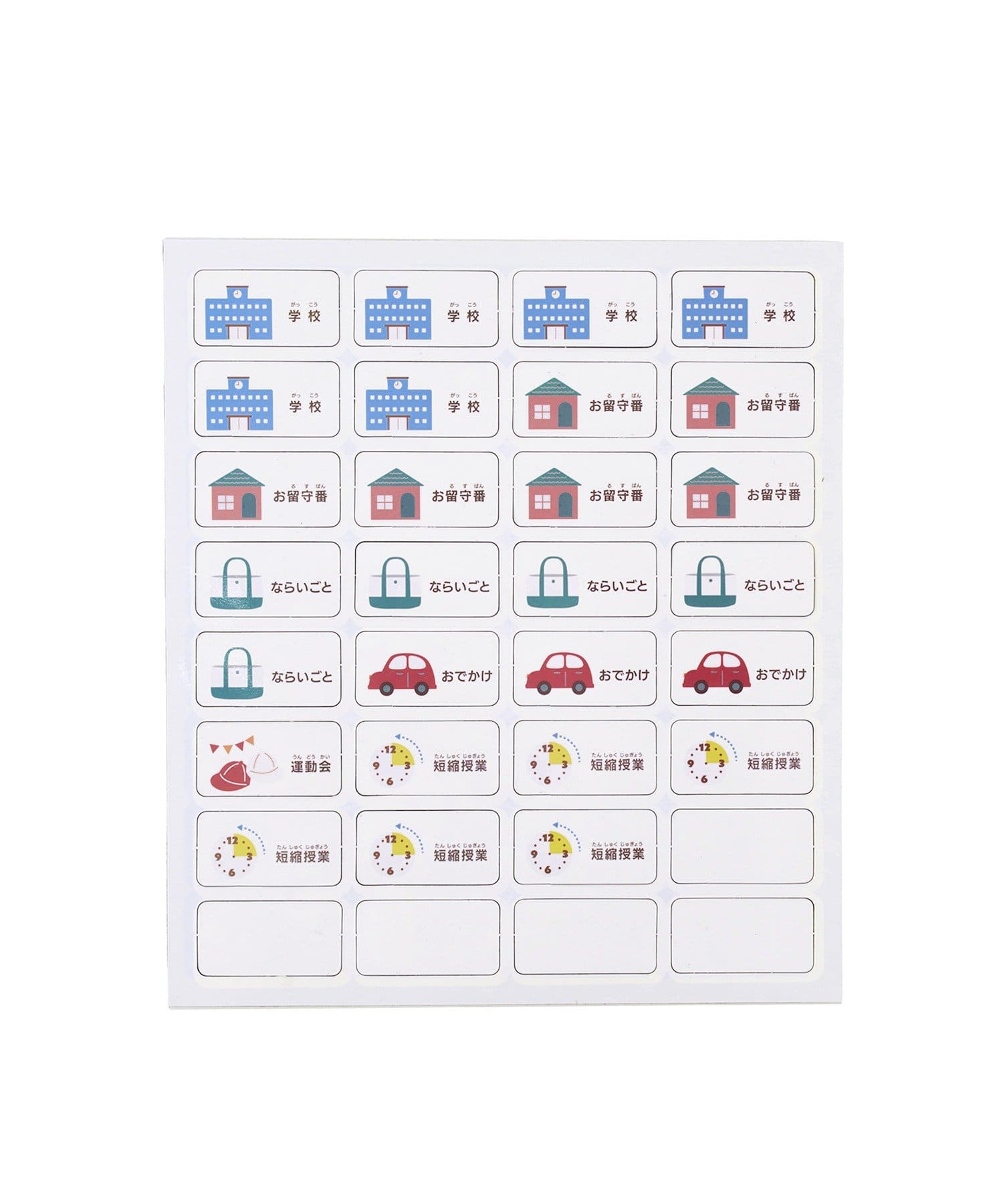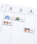 ●「遠足」「運動会」「習い事」など、学校生活に欠かせないアイコン入りの両面マグネットがたっぷり32枚入っています。