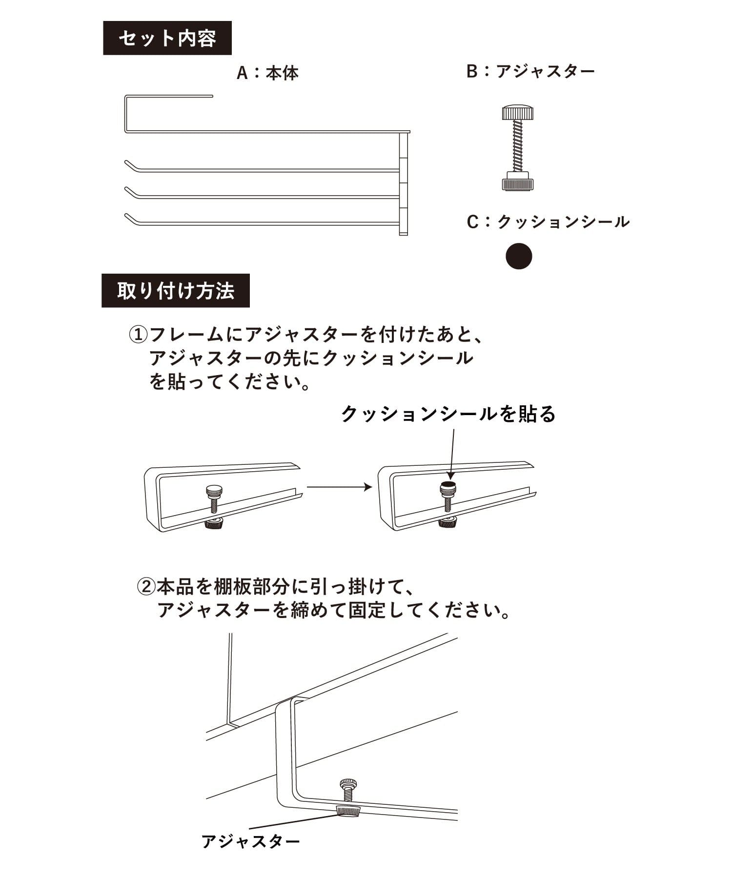 ●棚板に挟み、アジャスターで固定するだけの簡単設置!