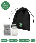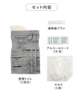 ●携帯歯ブラシ、アルコールシート(10包)、マスク(3枚)、携帯トイレ(3回分)のセットです。