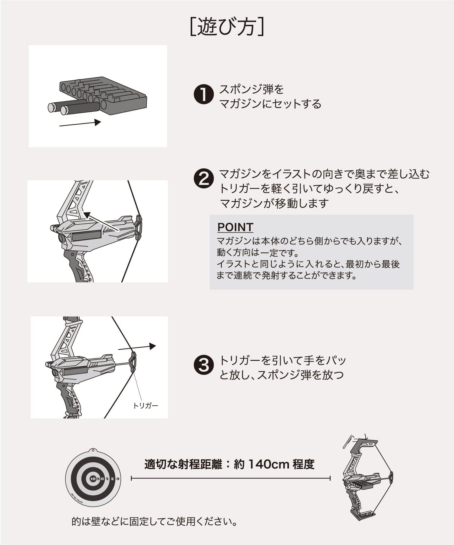 ●本品で遊ぶ際は、人や動物に向けて撃たないでください。近距離で顔に当たるとケガをする恐れがあります。