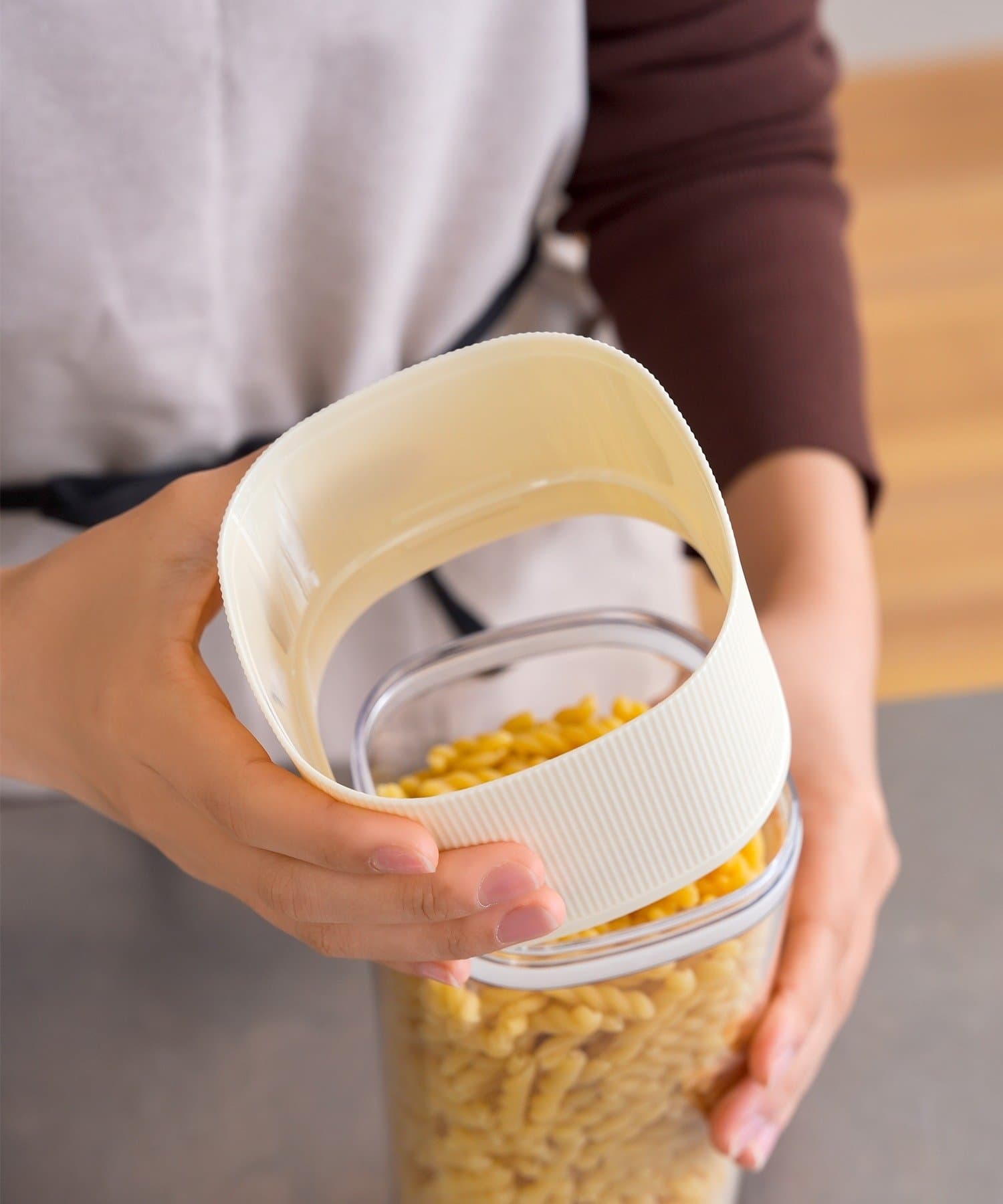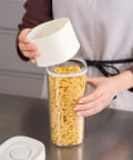 ●調節パーツを逆さまにはめると高さが変わる保存容器!高くするとパスタが入れられるロングタイプです。