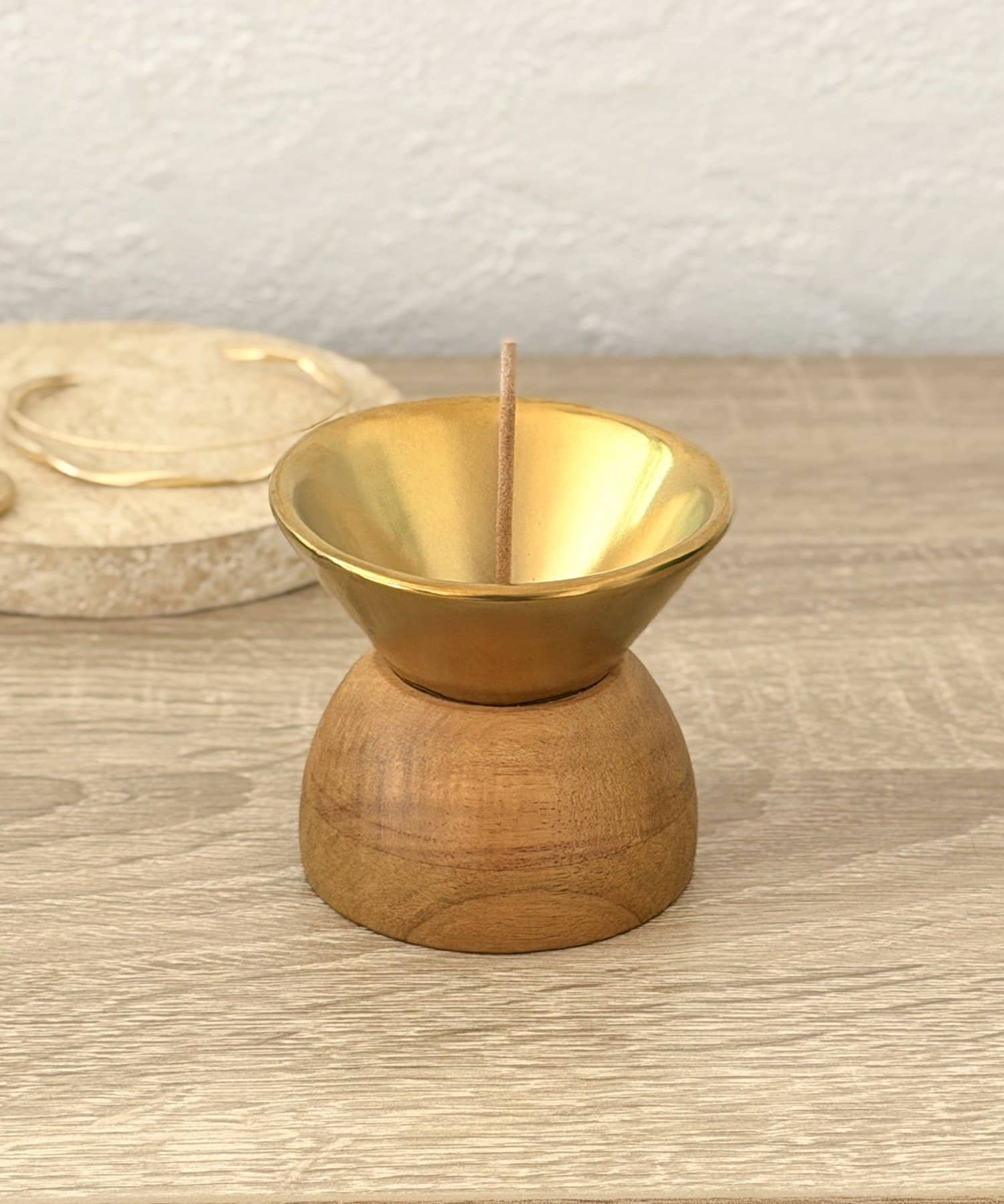 ●ウッドとゴールドの異素材を組み合わせた、洗練された佇まいのインセンススタンド。