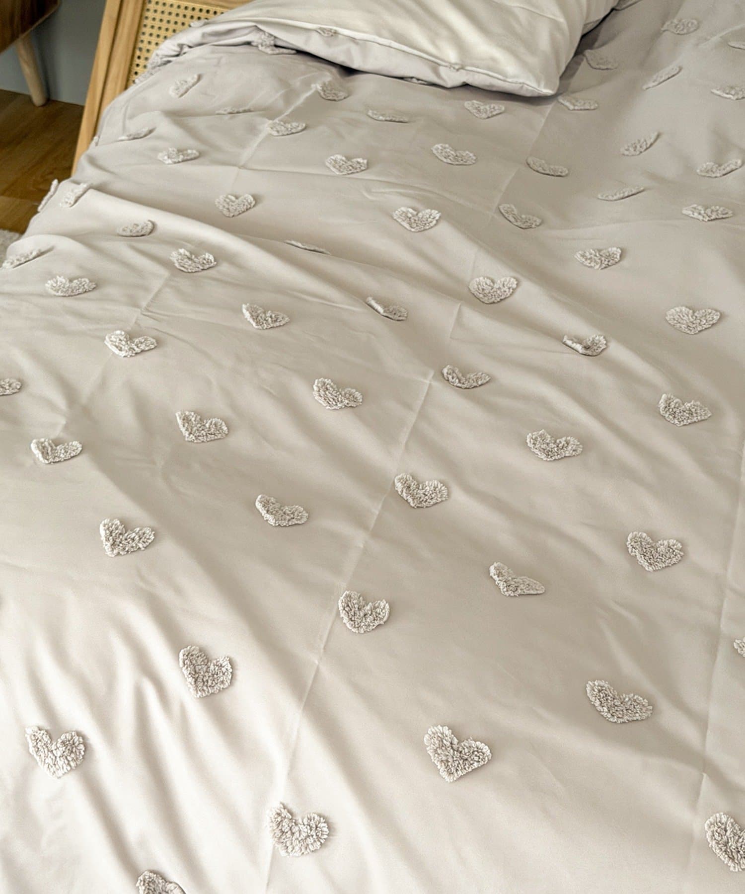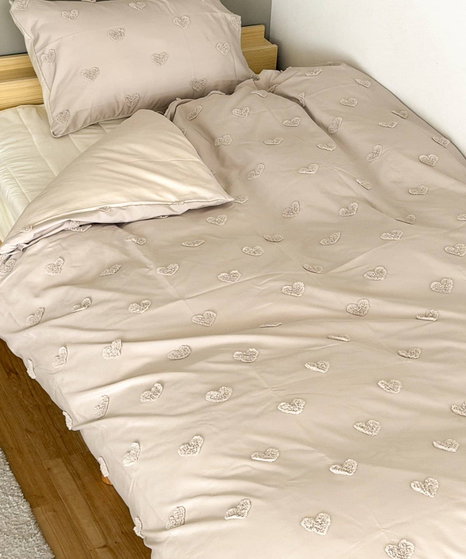 ●立体感のあるハートジャガードが魅力のかわいい布団掛けカバーです。
