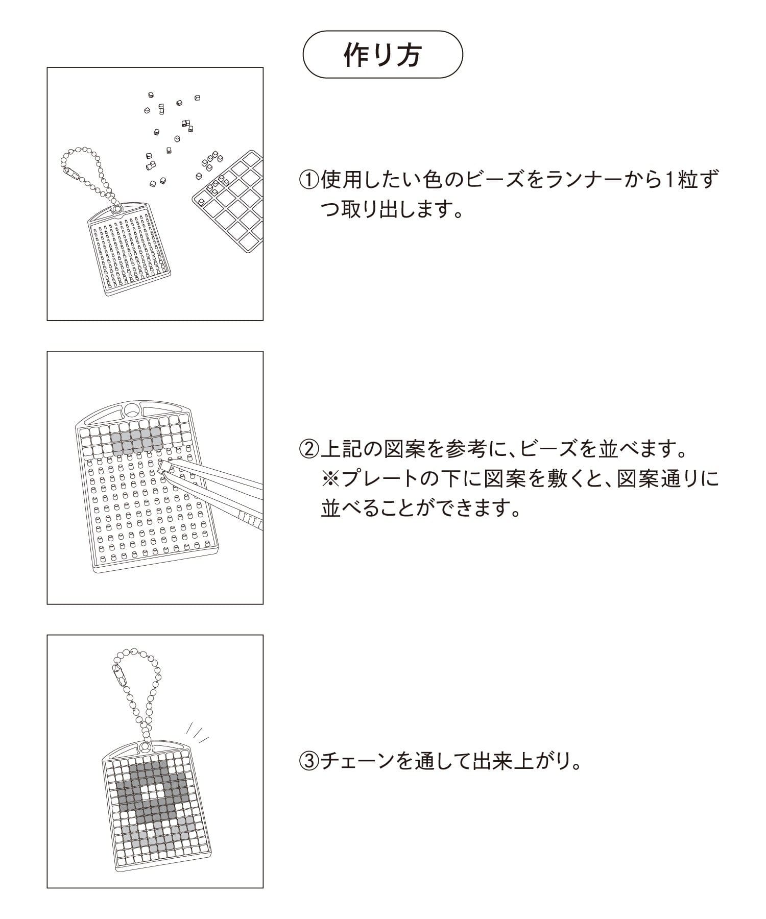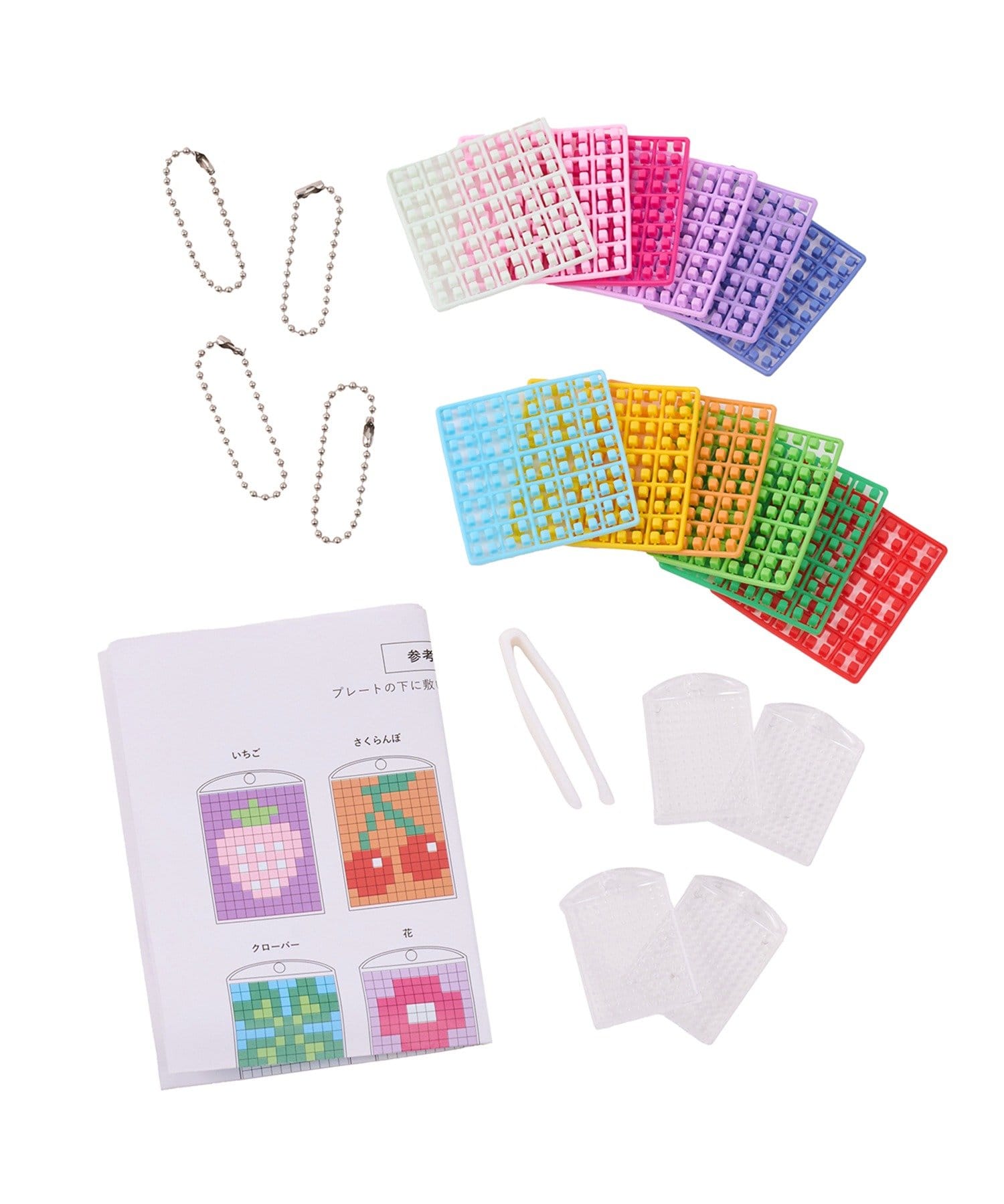 セット内容:ビーズ12枚、プレート4枚、ボールチェーン4本、ピンセット、参考紙