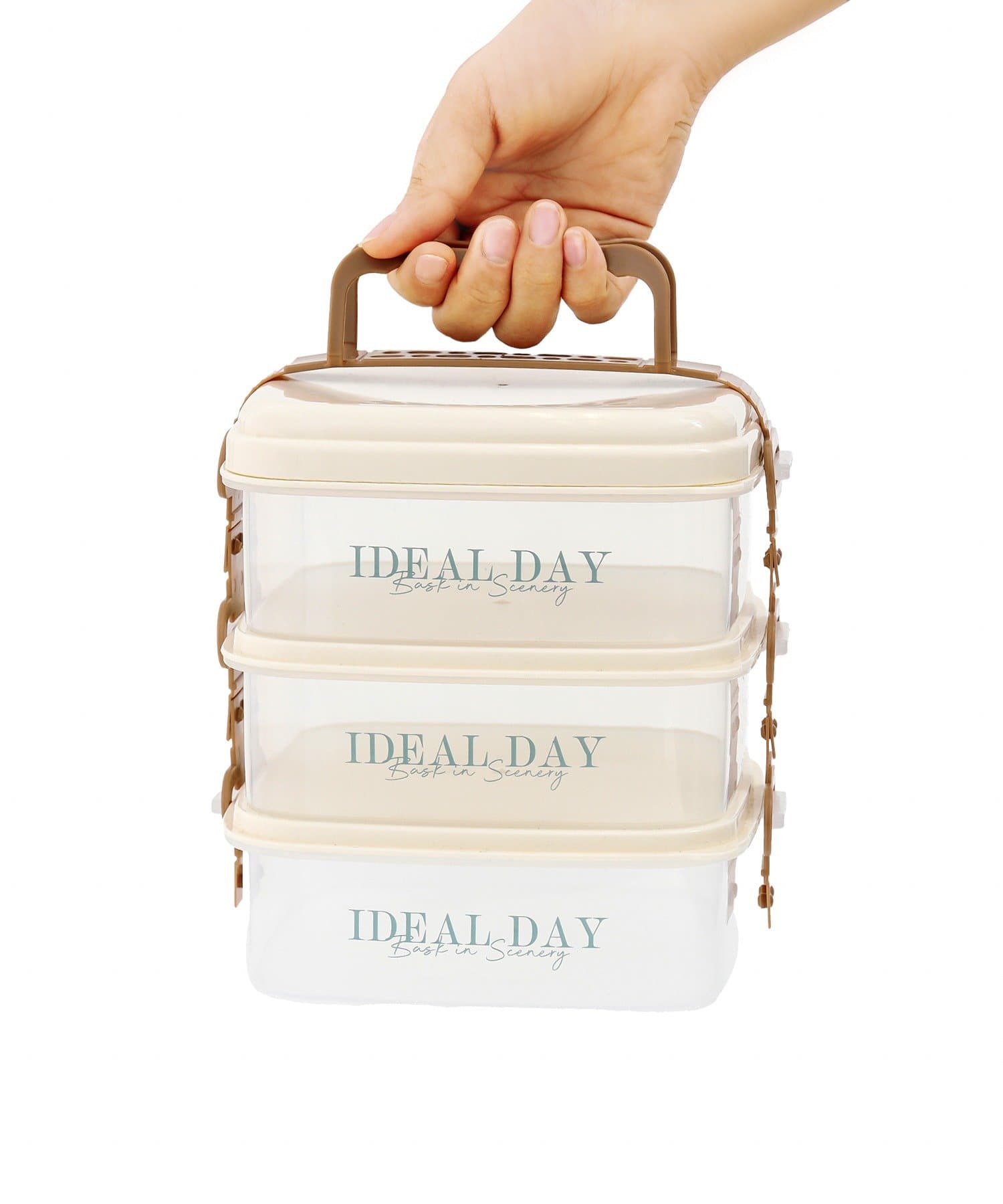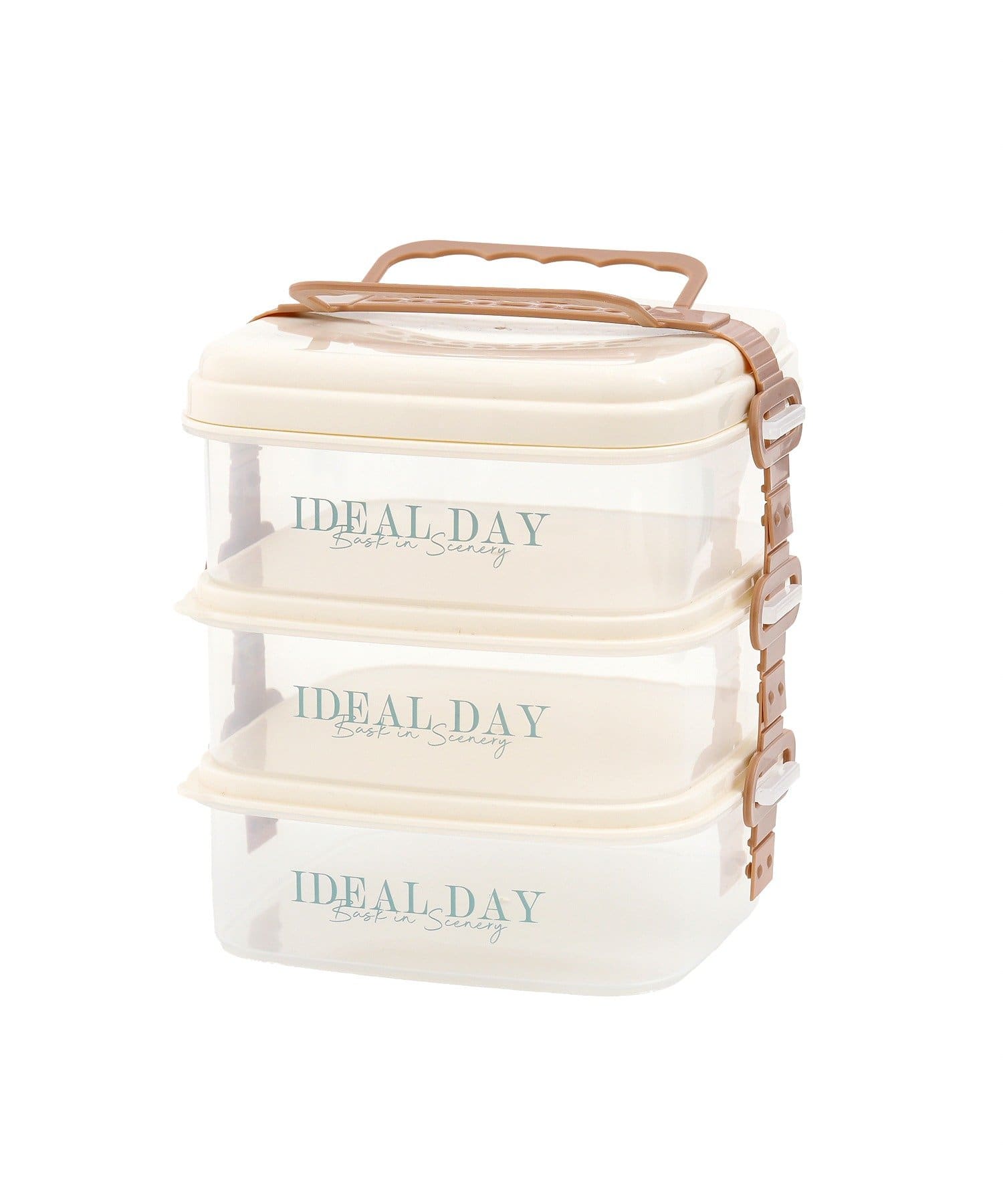 ●留め具で3段をまとめて固定できる+持ち手が付いているので持ち運びやすいです◎