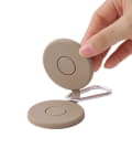 ●カラビナ付きでバッグに取り付けられる帽子クリップ。