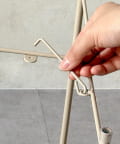 2.留め具を丸穴に差し込み、スタンドを固定します。