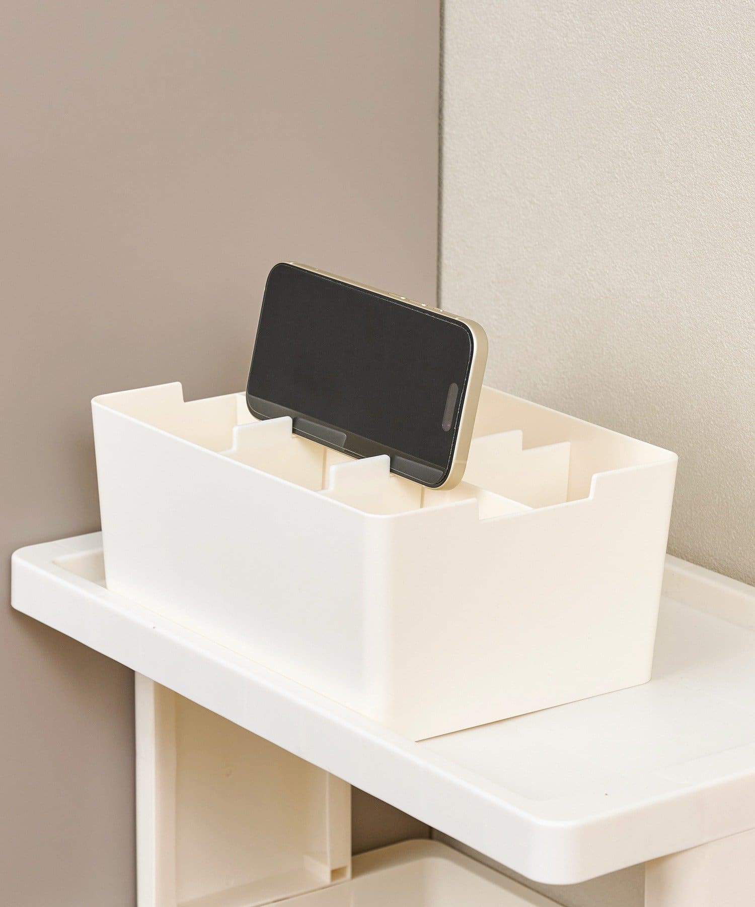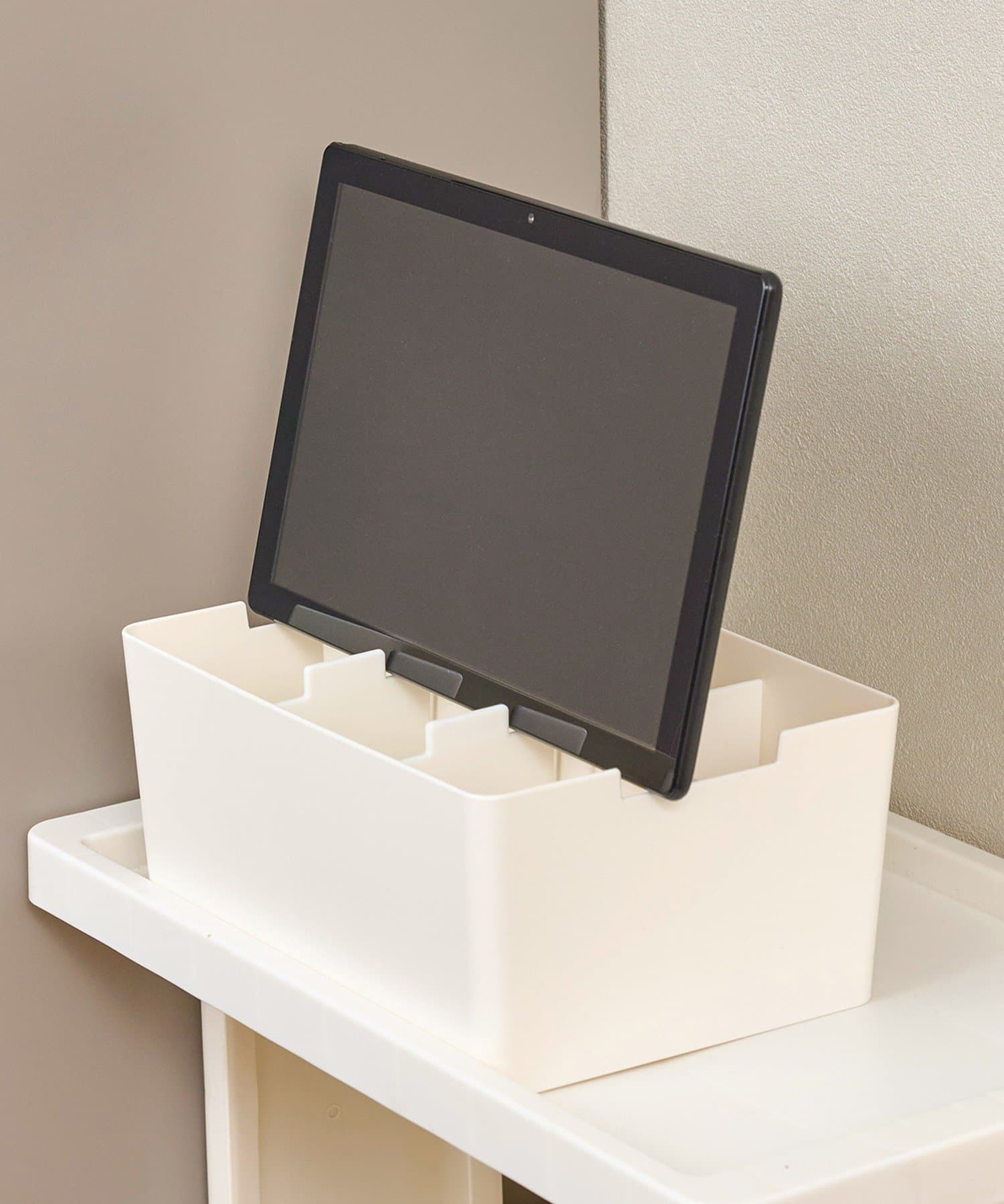 ●仕切り板の位置を調整できるので、スマートフォン・タブレットを立てかけることも出来ます。