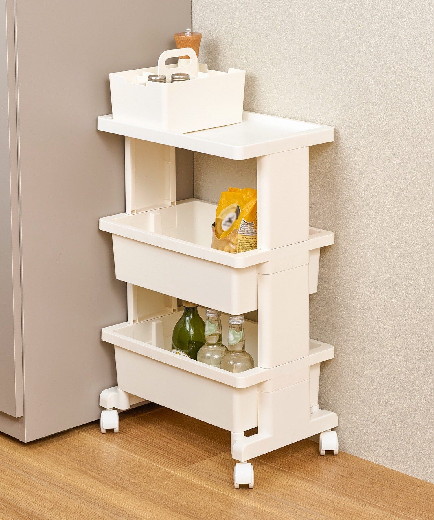 ●別売りのテーブルワゴンミニに、2個ぴったりセットできます。