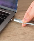 ●ケーブルを端子に近づけるだけでカチッと吸着。機器の差し込み口を確認せずスムーズに接続できます。