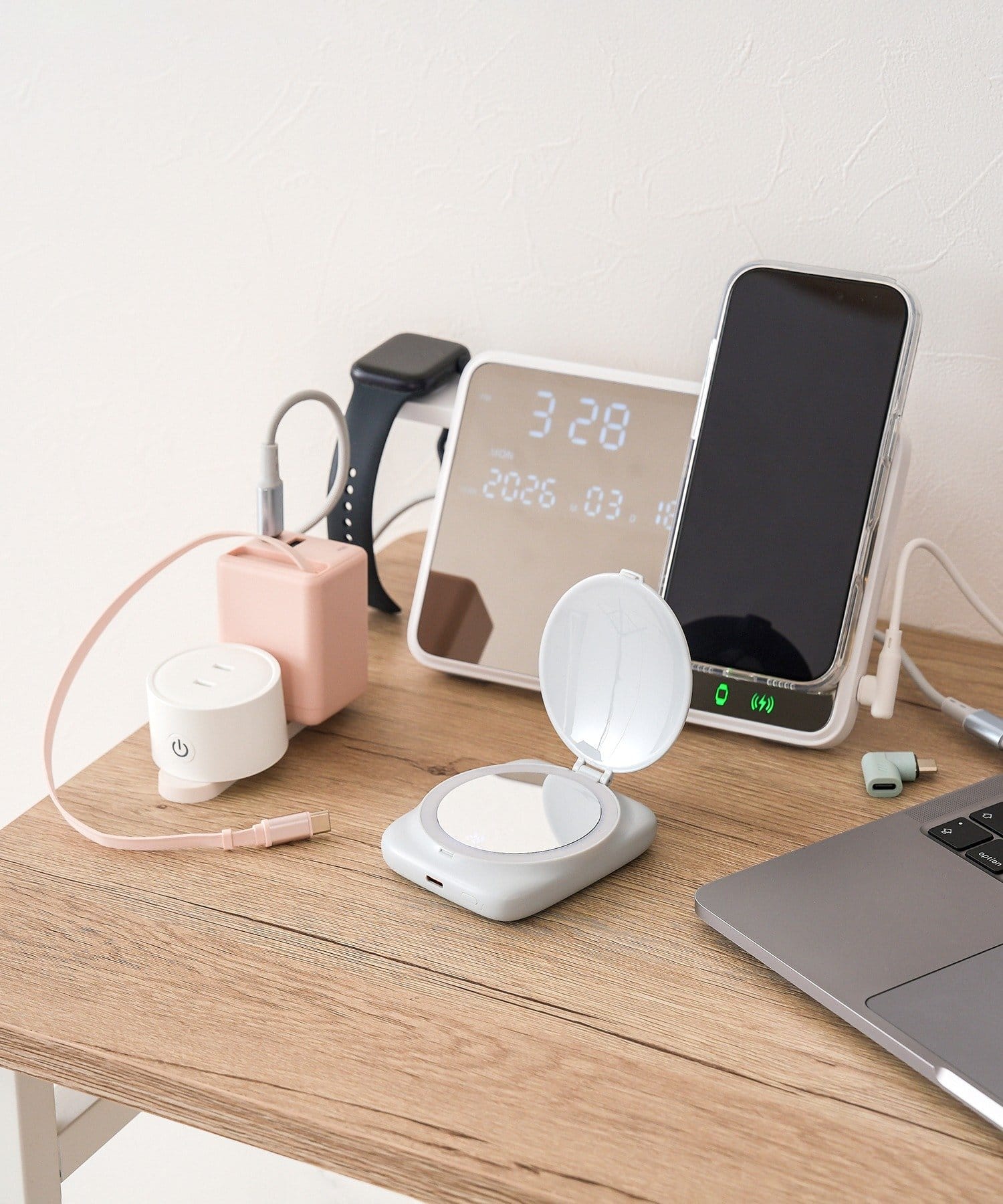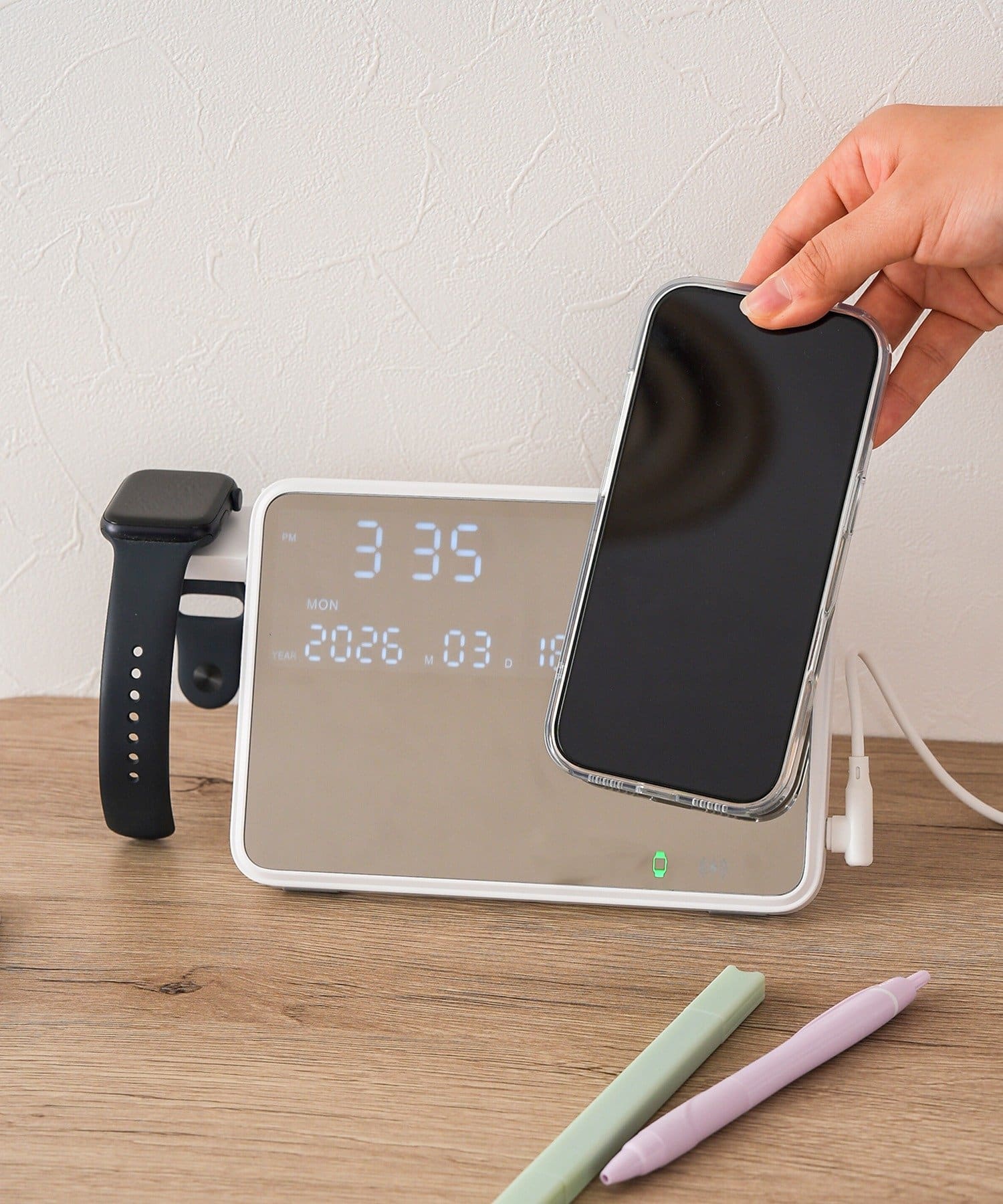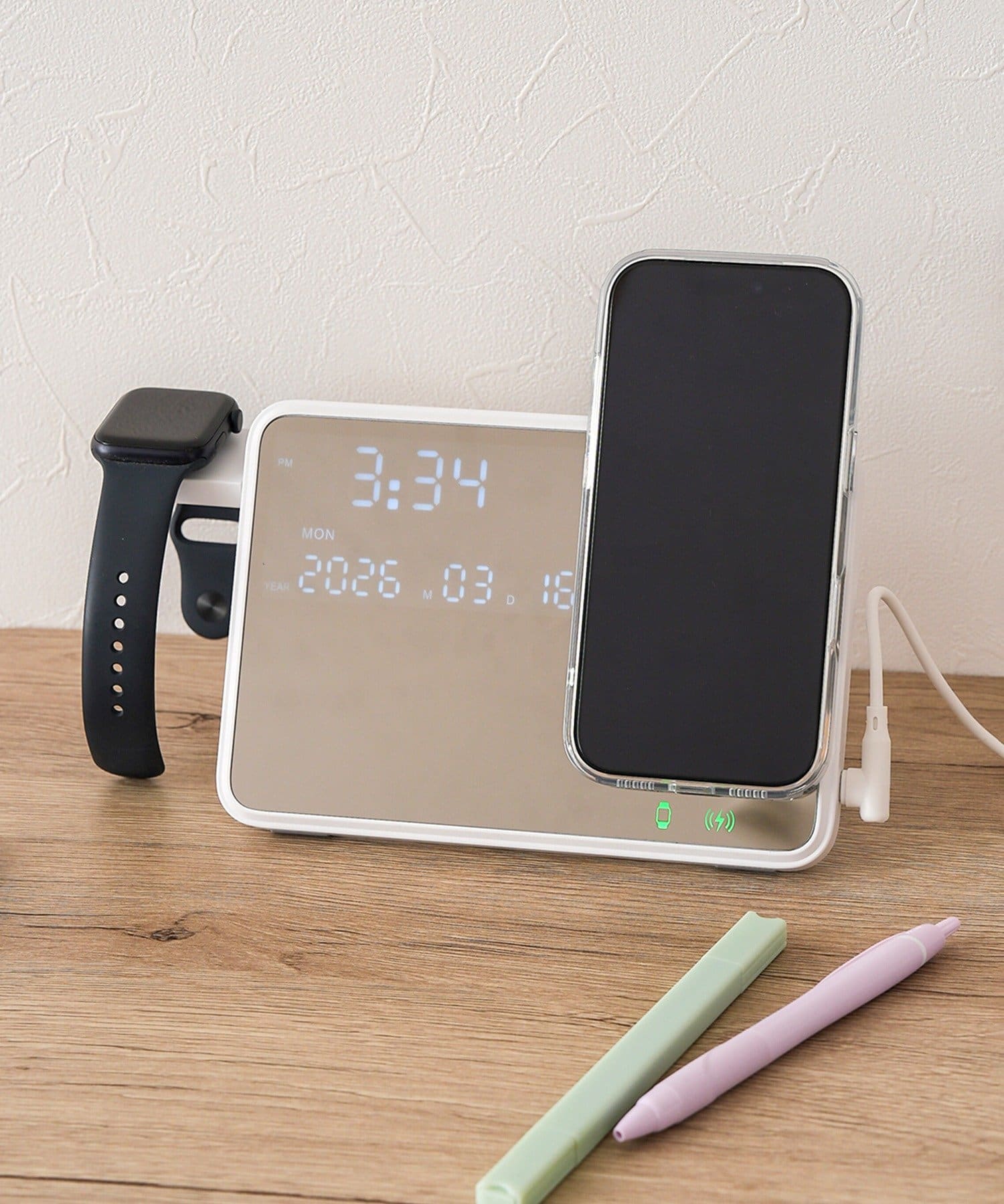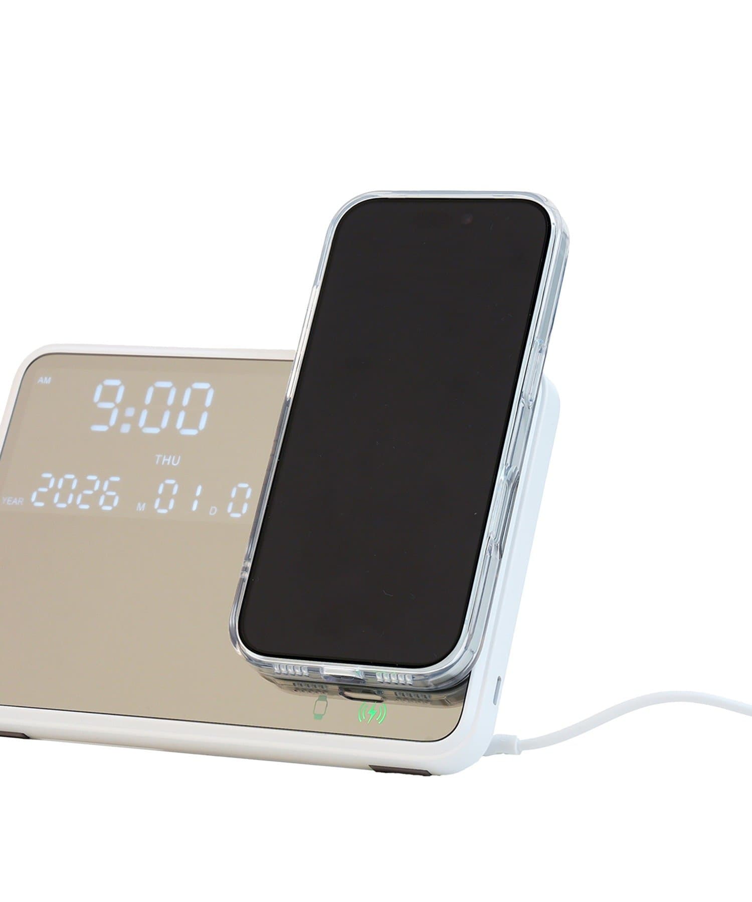 TOP > 3COINS > ライフスタイル > 家電/デバイス > 家電/デバイスその他 > ミラースタンド時計2IN1チャージャー