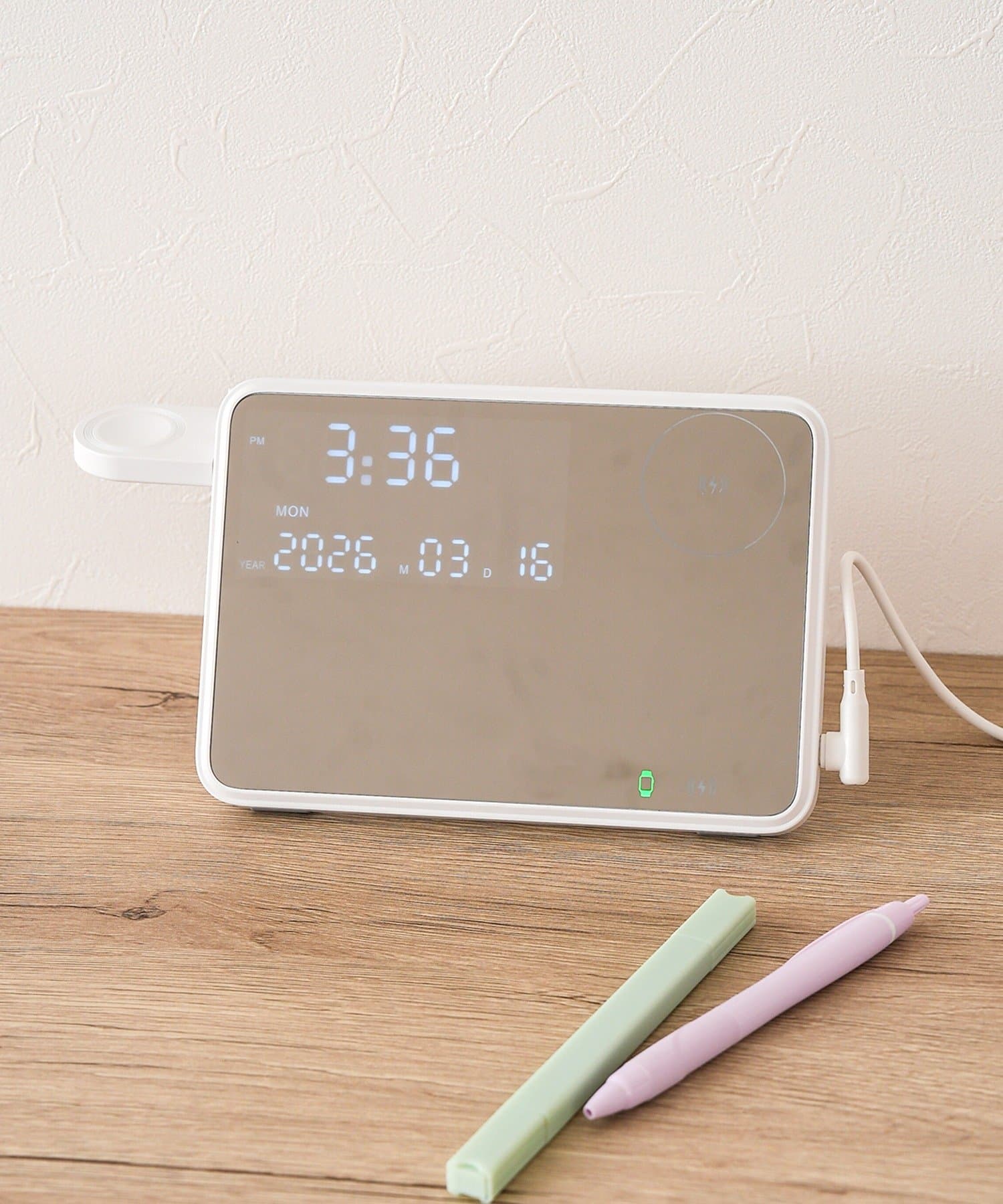 ミラースタンド時計2IN1チャージャー