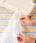 ●ゴミ袋を掛けられるフック付きです。