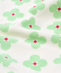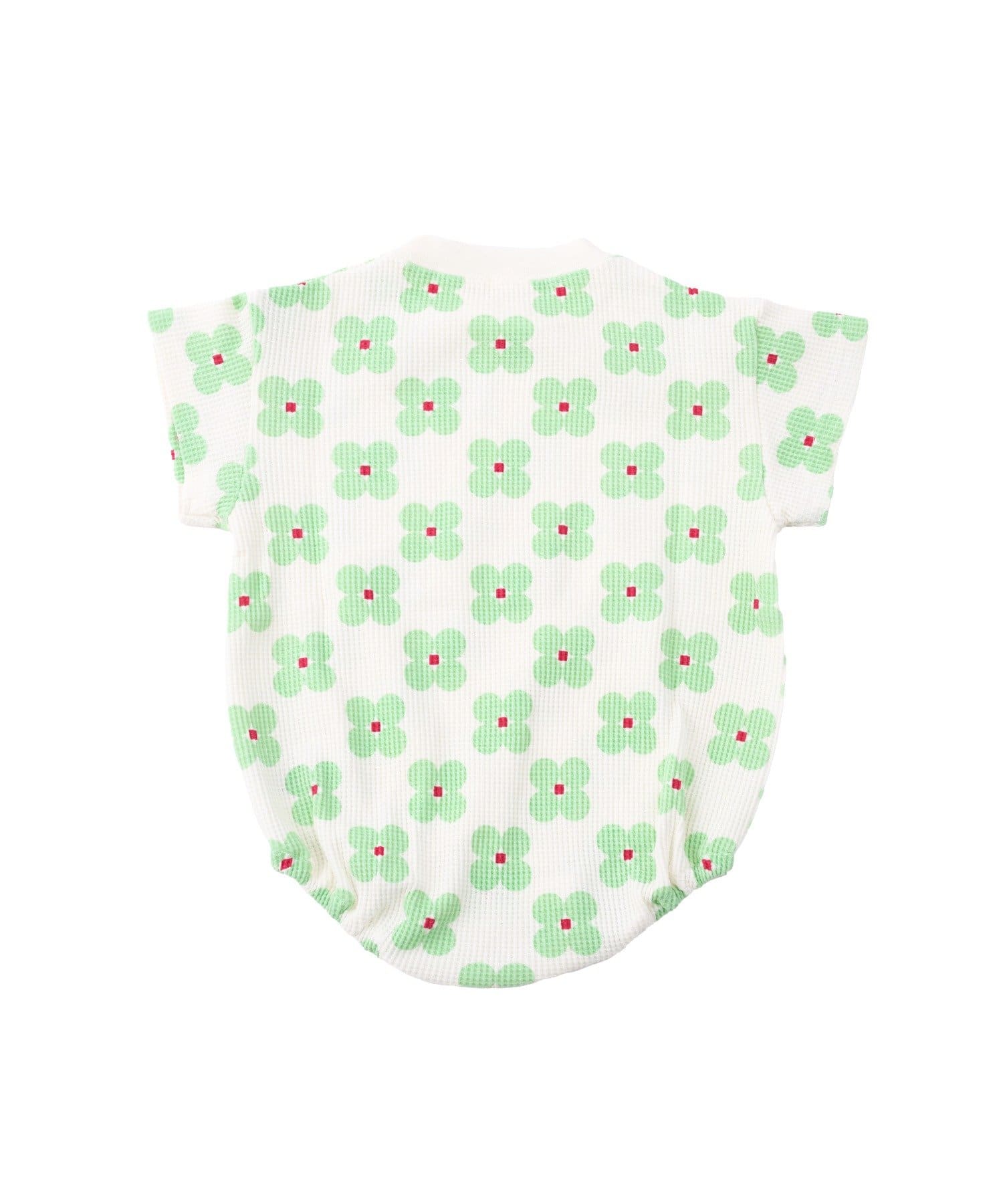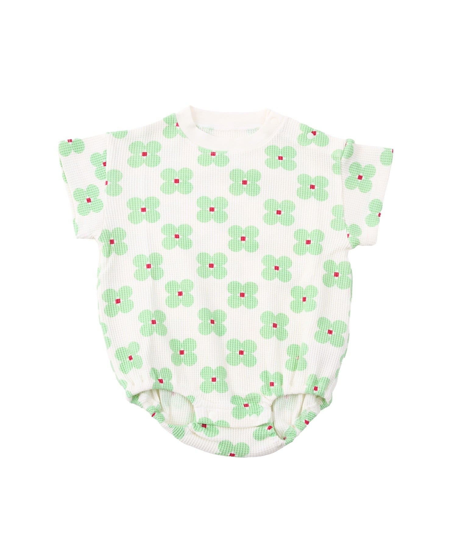 ●ぽこぽことした立体感のあるワッフル生地が、ナチュラルなかわいさを引き立てるロンパースです。