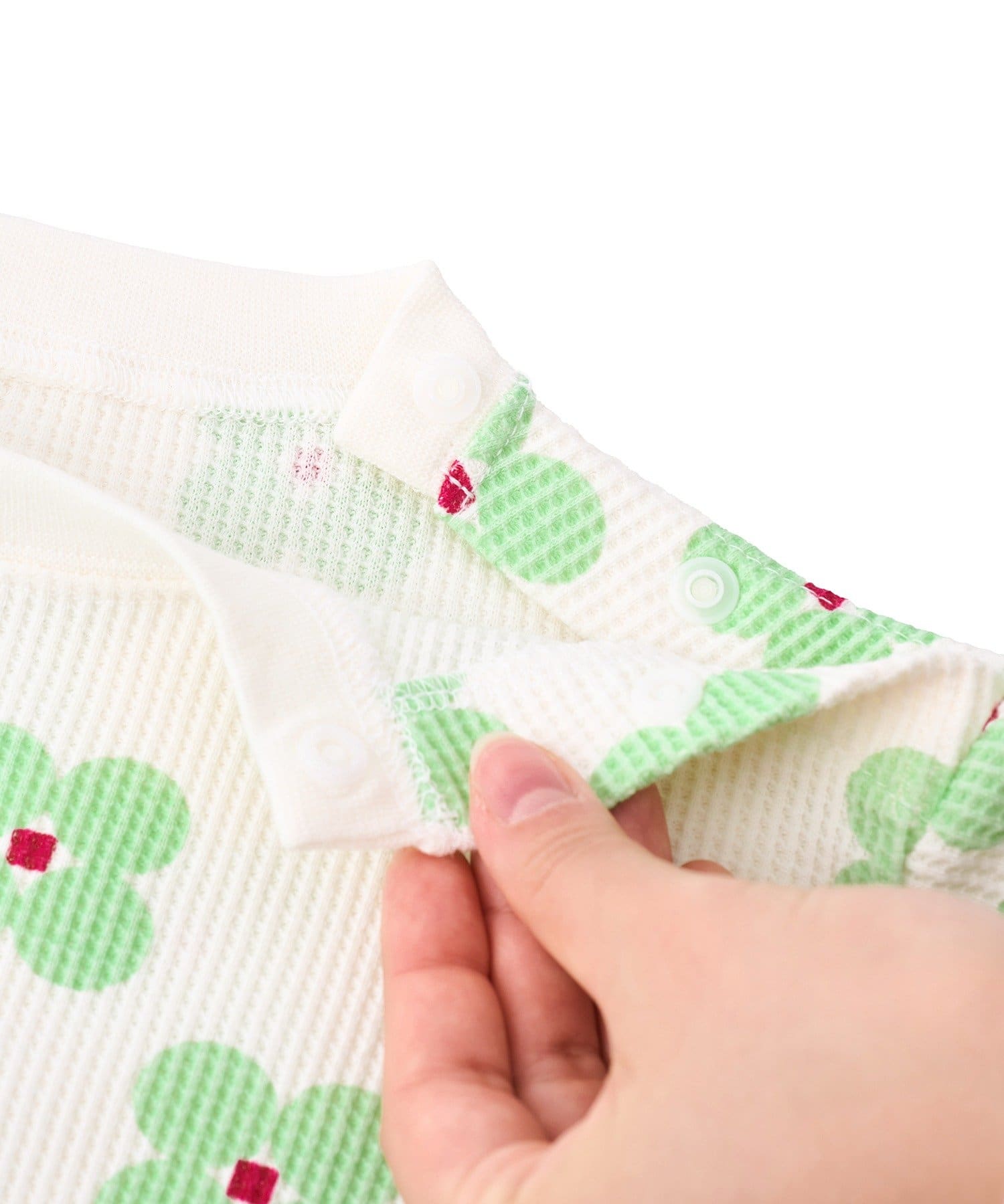 ●股下のスナップボタンで開閉でき、おむつ替えも簡単に行えます。