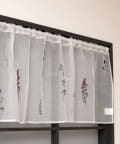 ●繊細な花の刺繍をあしらった、やさしい雰囲気のカフェカーテンです。