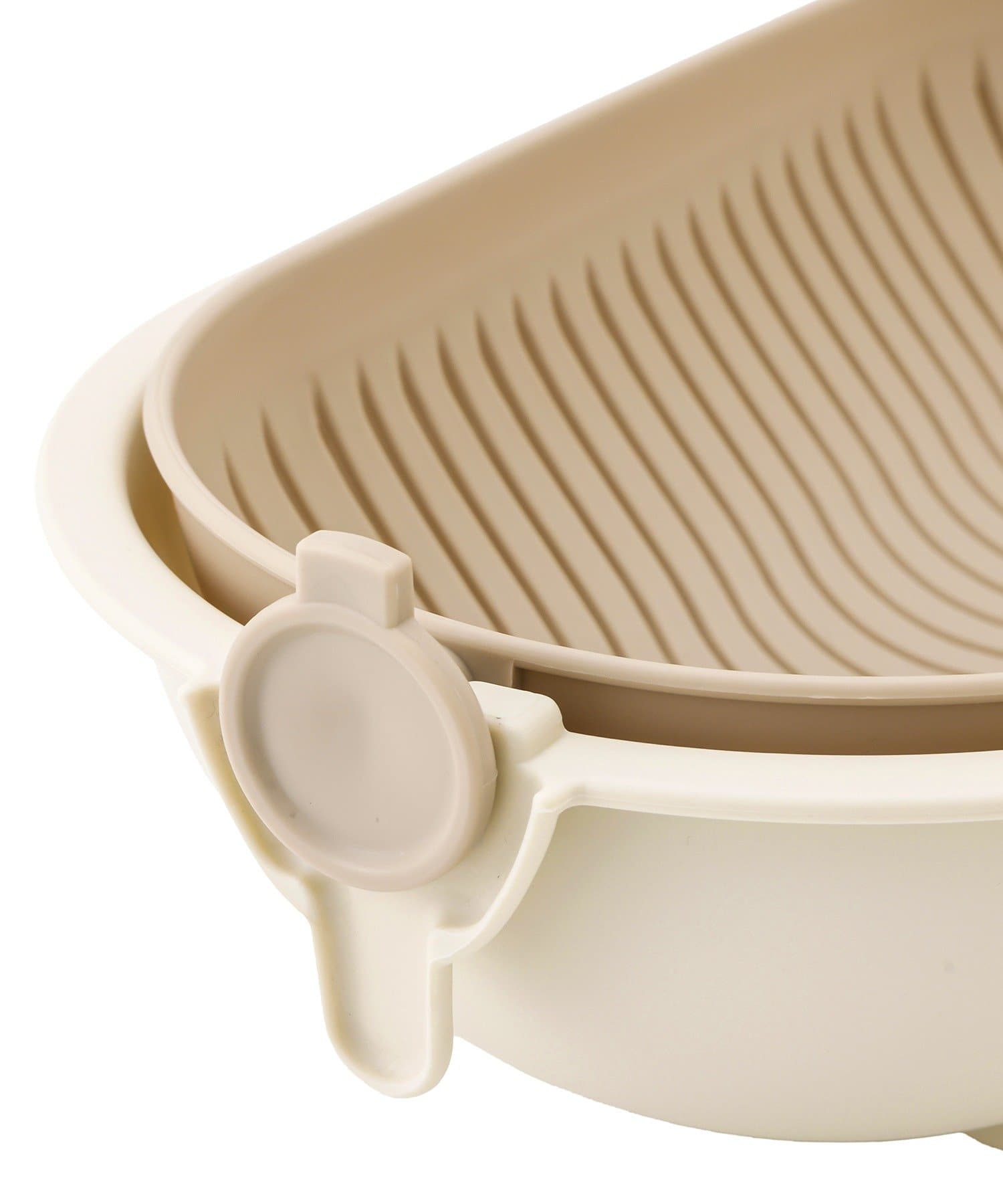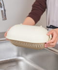 ●傾けるだけでザルが回転し、簡単に水切りができます。