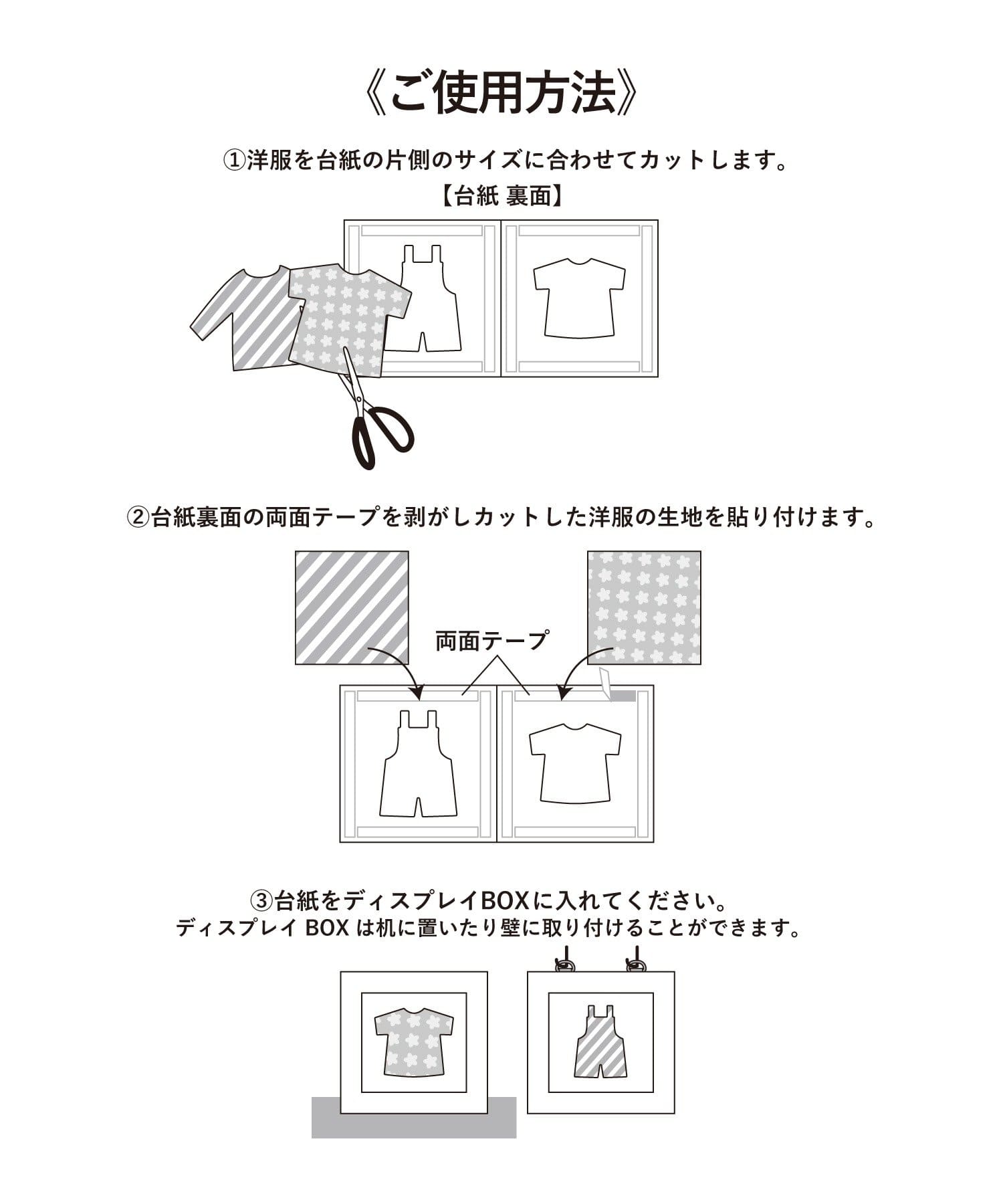●思い出の服をアルバム感覚でかわいく残せる、ディスプレイBOXです。