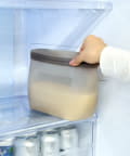 ●冷蔵庫内で立てて保存できるシリコーンバッグ。