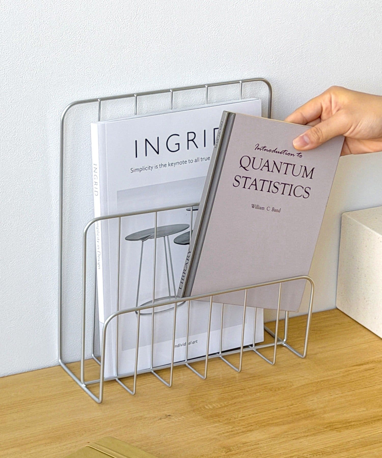 ●シンプルなシルバーデザインのファイルスタンド。