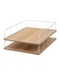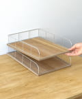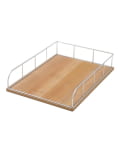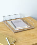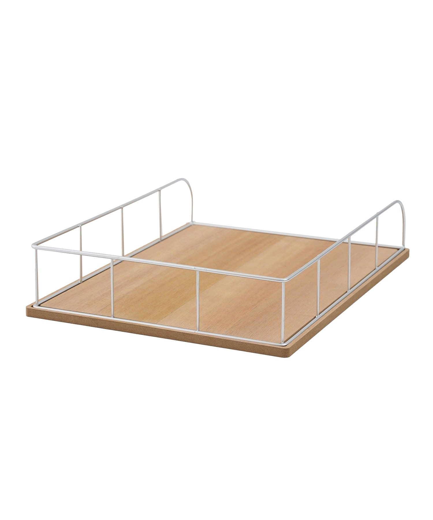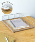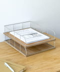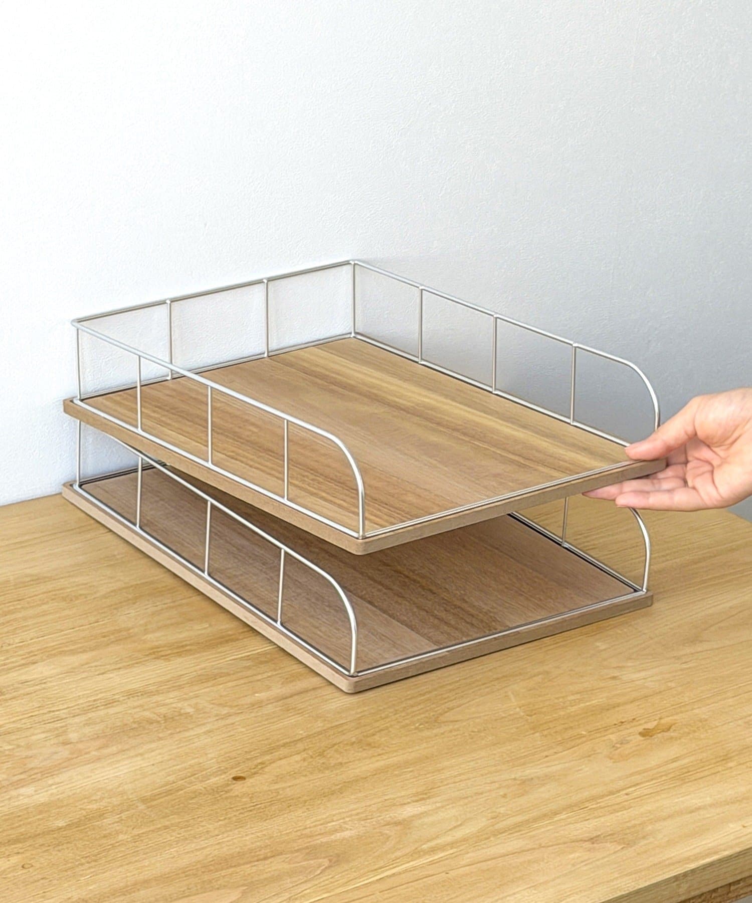 ●シルバーと木製板を組み合わせた、シンプルなファイルトレイ。