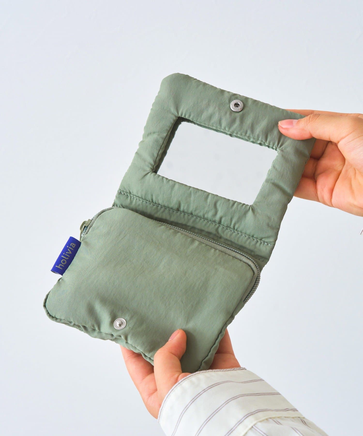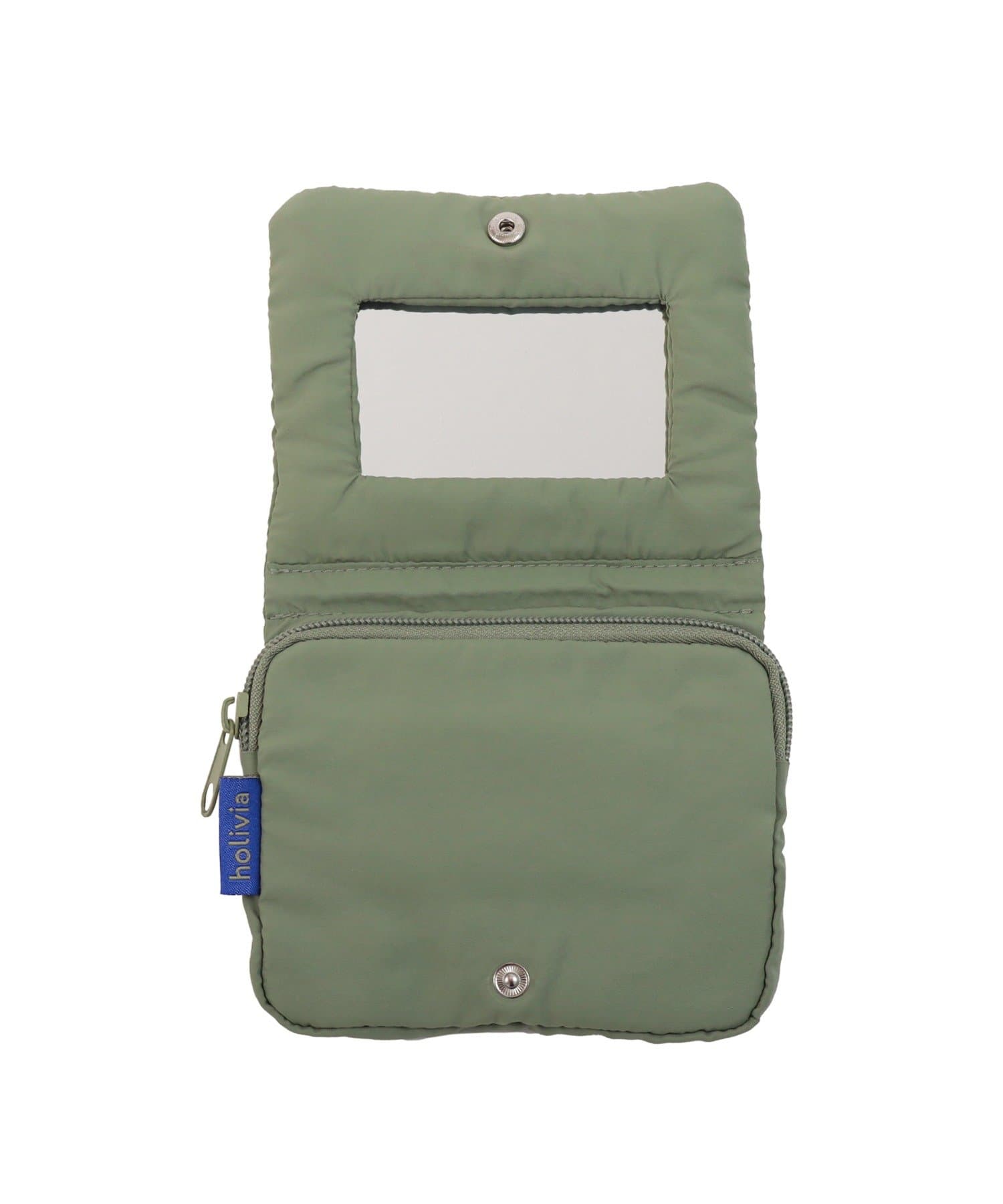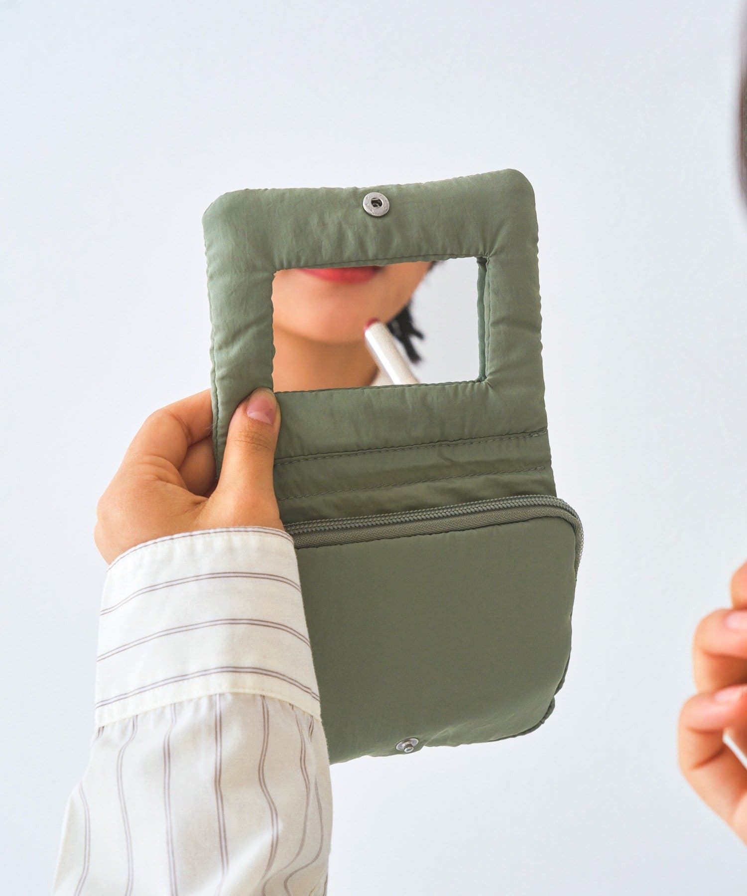 ●外出先でさっと確認できるミラー付きのポーチです。