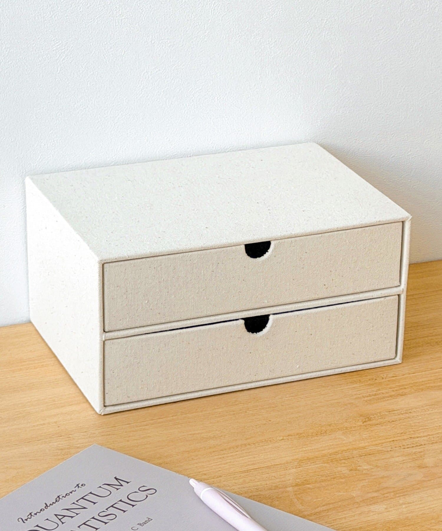 ●落ち着いたアイボリーカラーの引き出し収納ボックス。